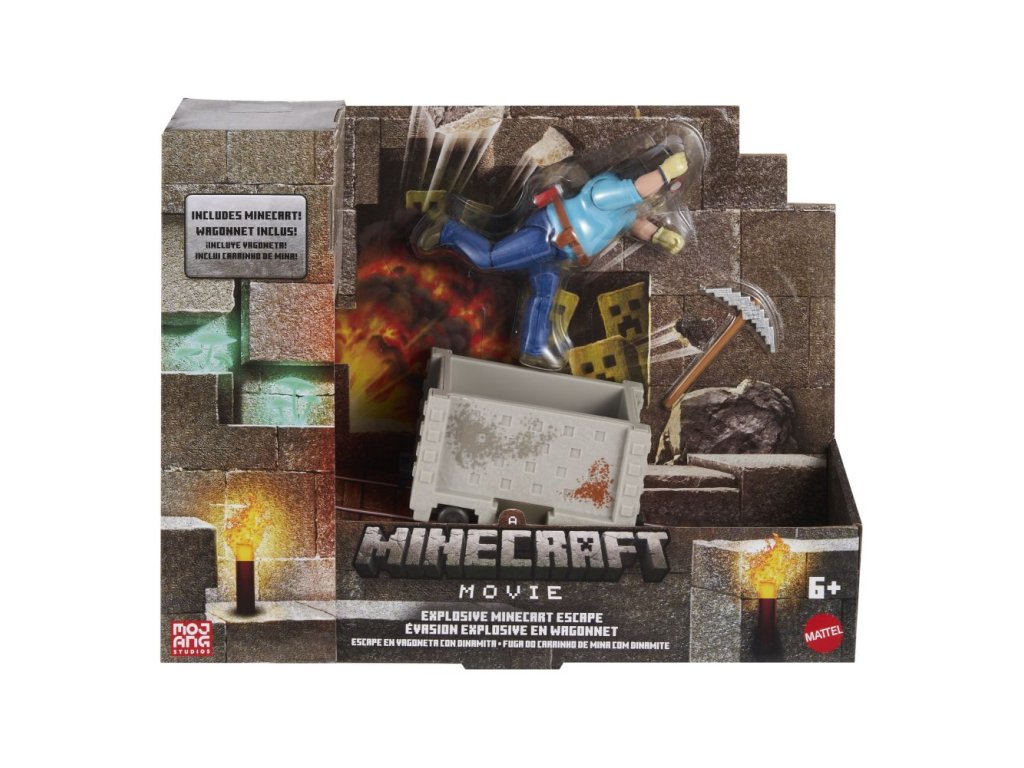 Vstupte do portálu a vydejte se do dobrodružného světa filmu Minecraft s tímto akčním setem inspirovanými filmem. Stavění, souboje a dobrodružství o přežití ožívají s touto figurkou Steva z Minecraftu a důlním vozíkem, které jako by vyskočily přímo z obrazovky do skutečného světa! Barvy a vzhled výrobku se mohou lišit.