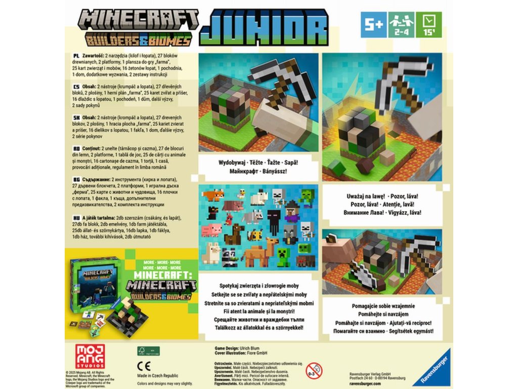 V Minecraft: Builders & Biomes Junior je vaším úkolem společně postavit farmu plnou zvířat dříve, než ji zaplaví příšery! Sbírejte potřebné bloky, stavějte stodoly a pečlivě vybírejte místa pro každé zvíře, aby žádný blok nespadl do lávy. Čekají vás i nebezpeční nepřátelé – podaří se vám dokončit farmu včas a vytvořit bezpečný domov pro všechna svá zvířátka? Spolupráce a rychlá rozhodnutí jsou klíčem k úspěchu!