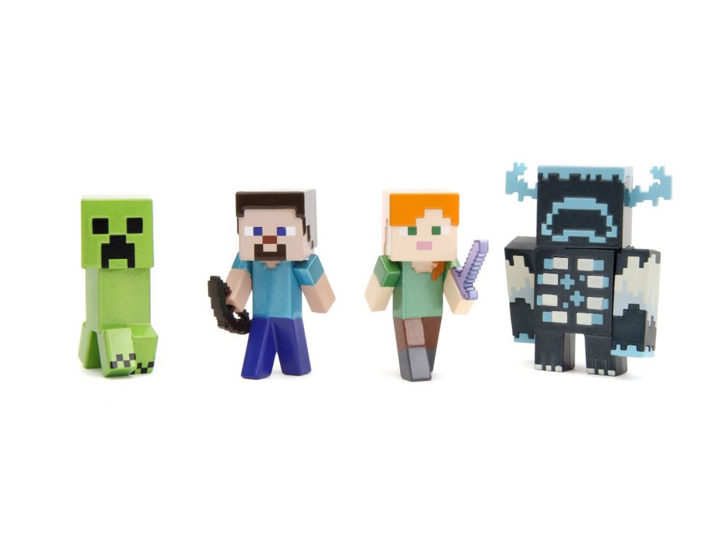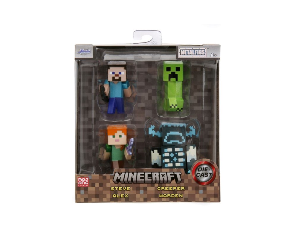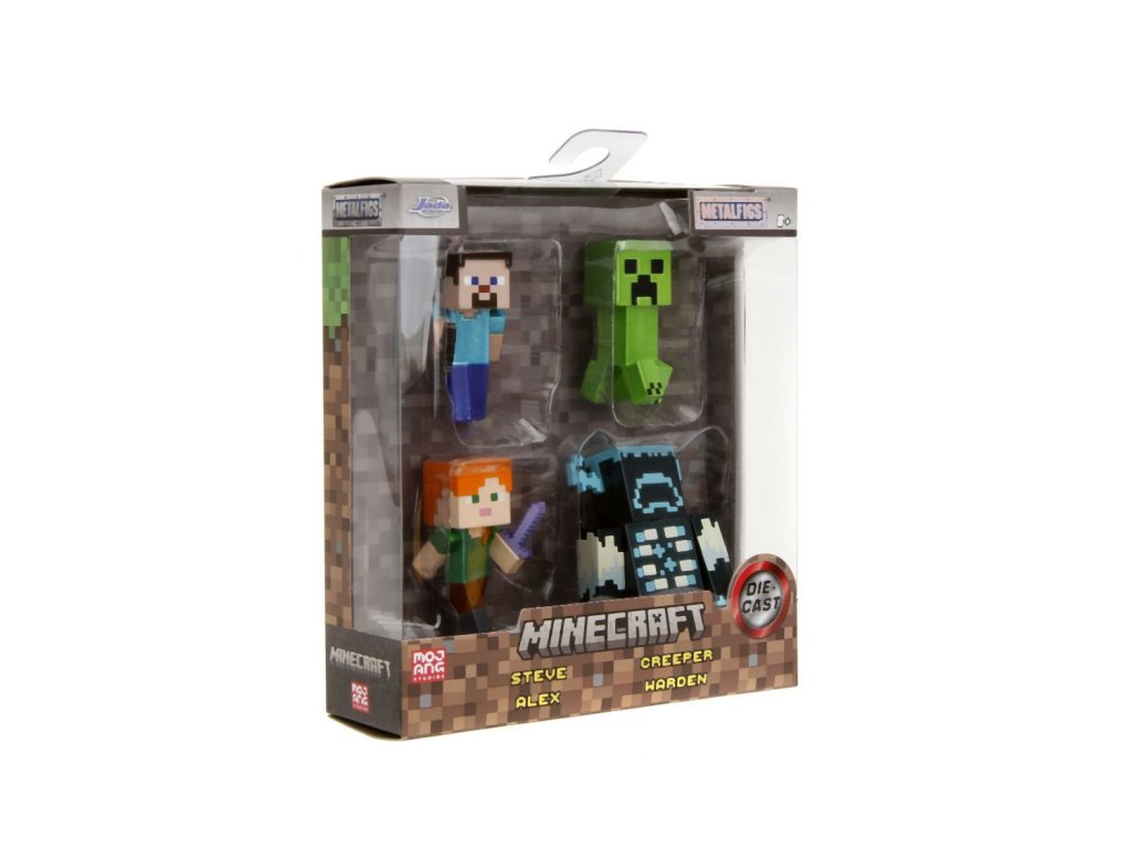 Sada kovových sběratelských figurek Minecraft, výška 6 cm. Steve, Alex, Crepper, Warden.