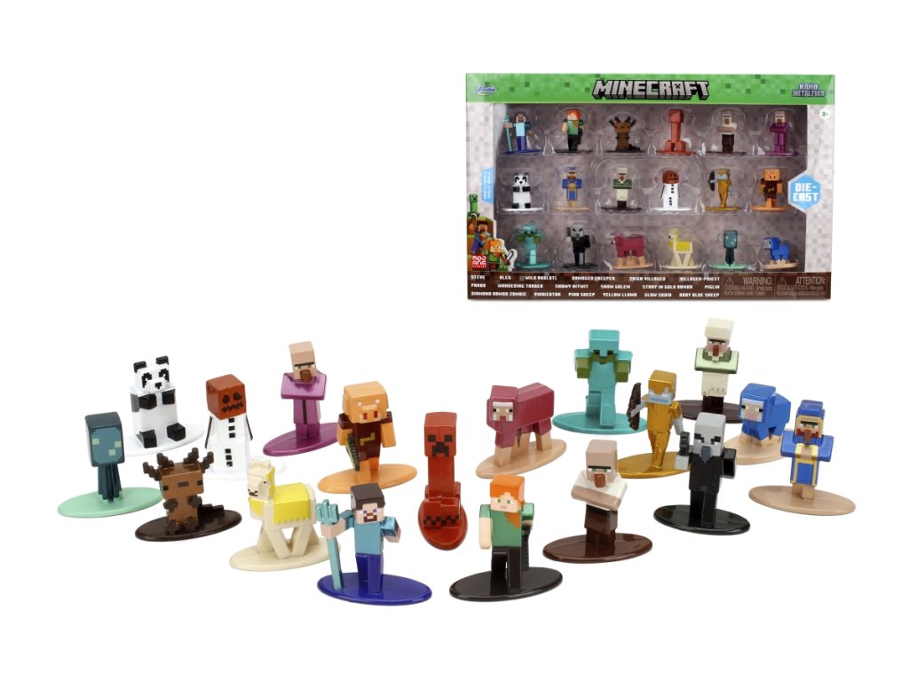 Kovové sběratelské nanofigurky Minecraft, multipack 18 ks. Výška figurky 4 cm.