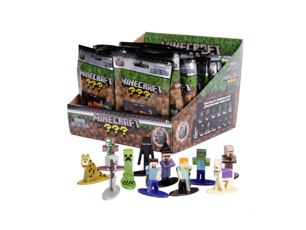 Kovové nanofigurky Minecraft v sáčku. Celkem můžeš nasbírat 13 druhů. Výška figurky 4 cm
