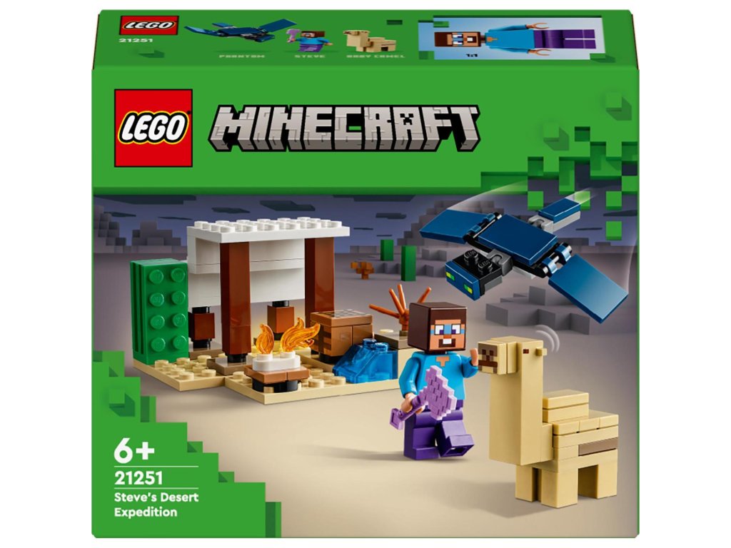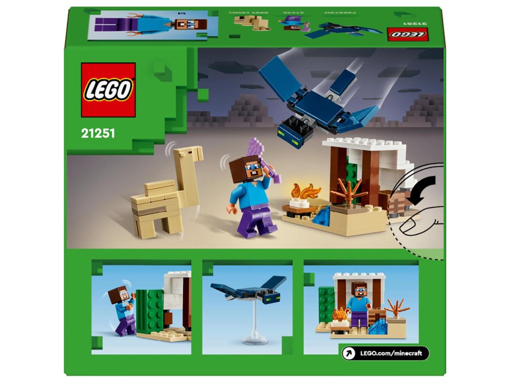 Tato stavebnice LEGO® Minecraft® pro malé stavitele od 6 let je zcela první sada s biomem pouště ze světa Minecraftu. Steve a výprava do pouště (21251) děti inspiruje k postavení domku v nehostinném prostředí, který poté musí ubránit před létajícím Přízrakem.