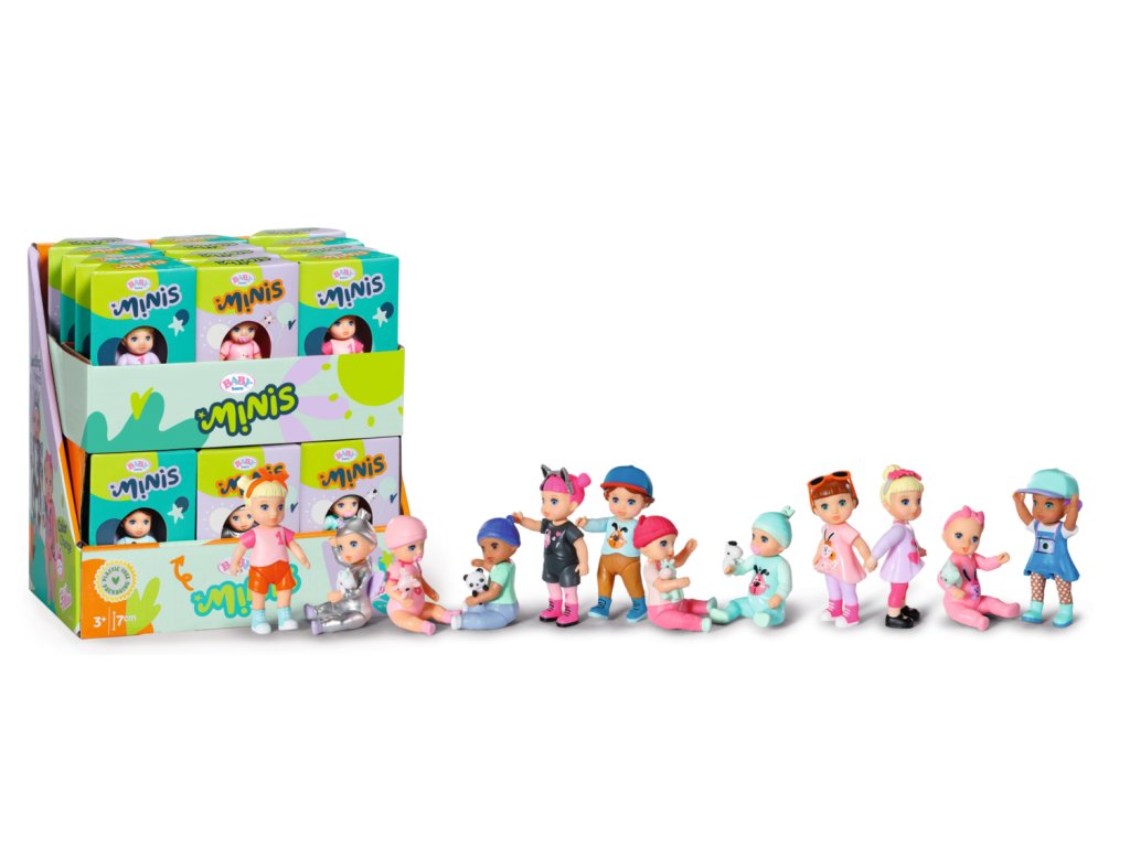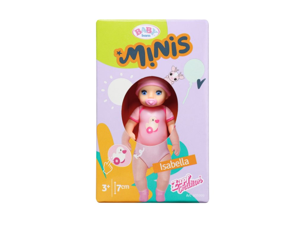 Jsou tu nové panenky BABY born Minis! Díky své praktické velikosti 7 cm se vejdou do každého batůžku nebo kabelky a děti si je mohou vzít všude s sebou. Každá z 12 figurek BABY born Minis má své vlastní jméno, svůj příběh, vlastnosti a záliby, díky kterým je každá z nich jedinečná. Vicky, Noah, Henry, Tom, Alex a Isabella jsou roztomilá miminka s malými zvířecími kamarády a efektem změny barvy. Becky, Leon, Anna, Billie, Hannah a Mila jsou jejich starší sourozenci, kteří mají různé navzájem vyměnitelné doplňky. Pohyblivé ruce, nohy a hlava zaručují, že se hraní s panenkami promění v nezapomenutelný zážitek a sbírání panenek tak bude ještě zábavnější!