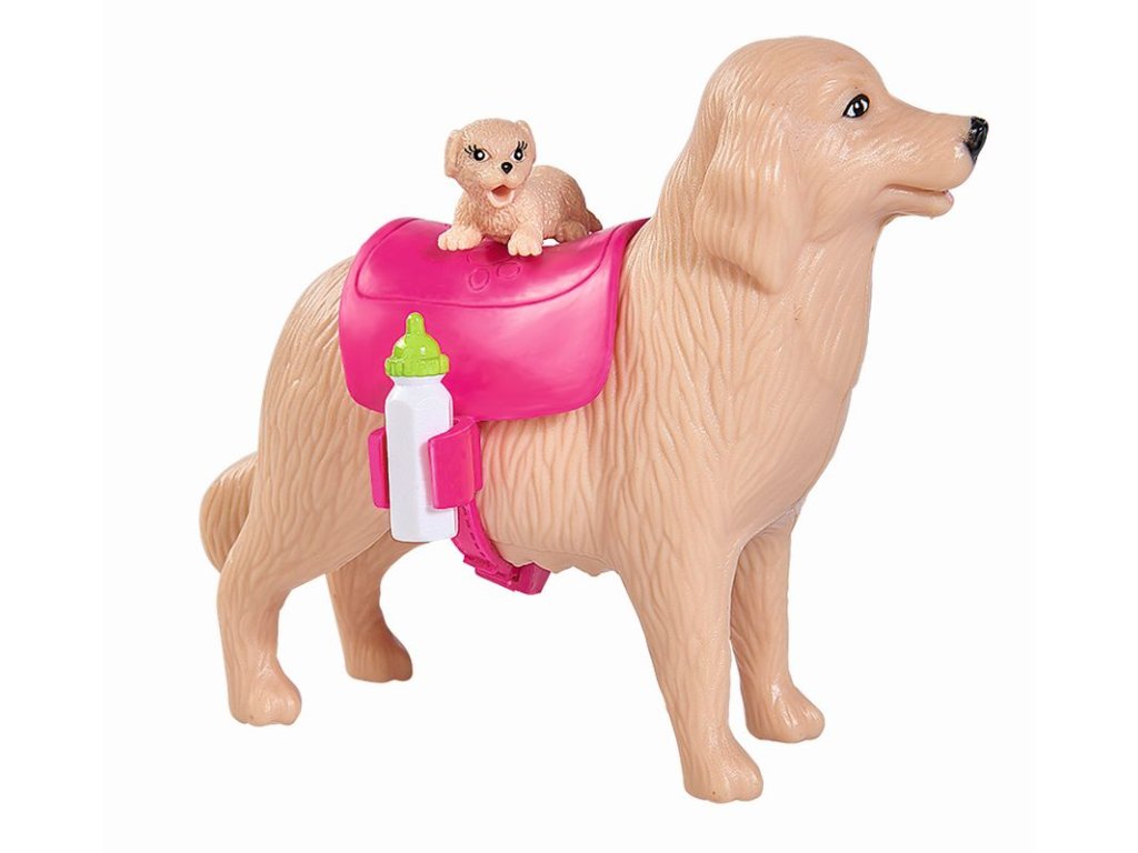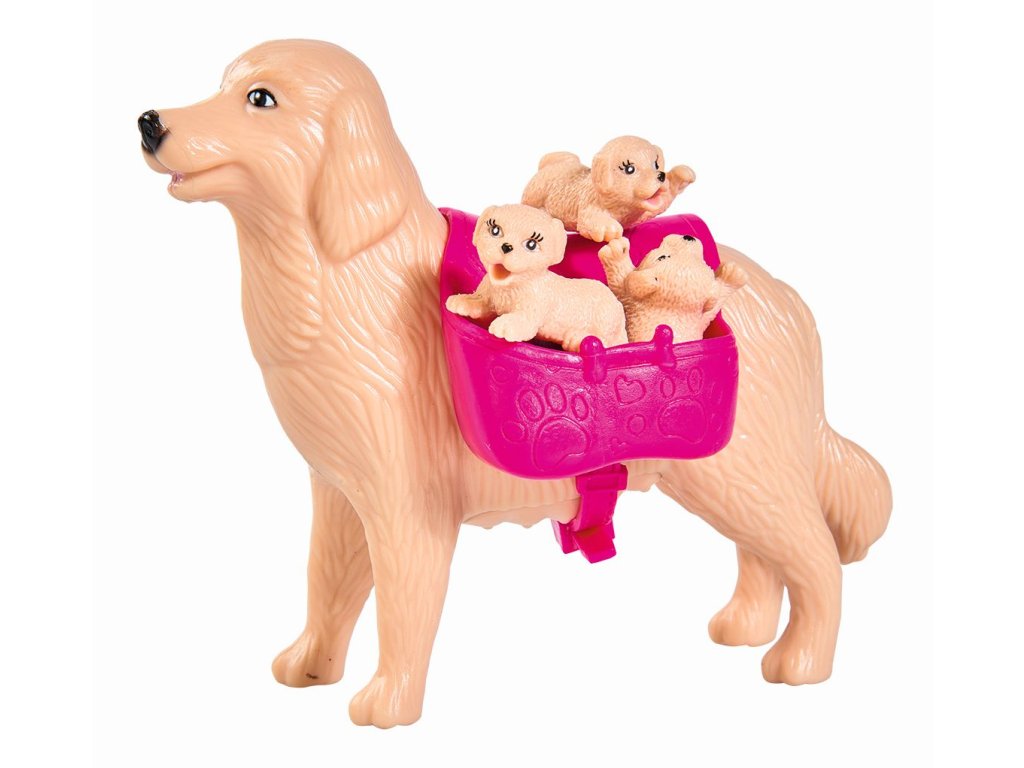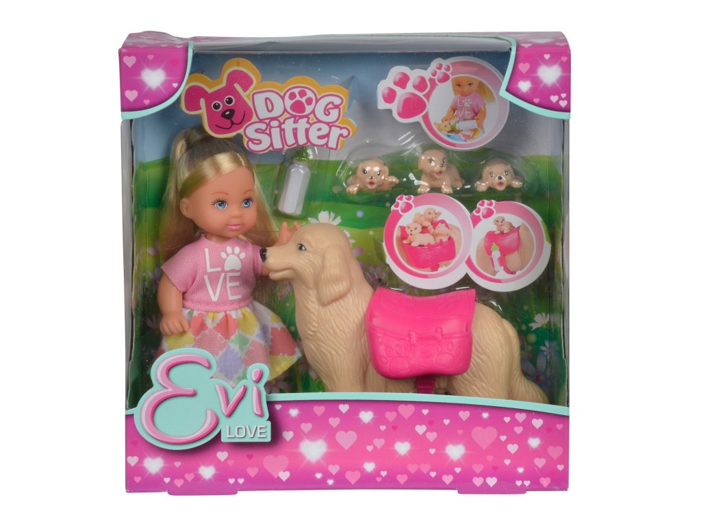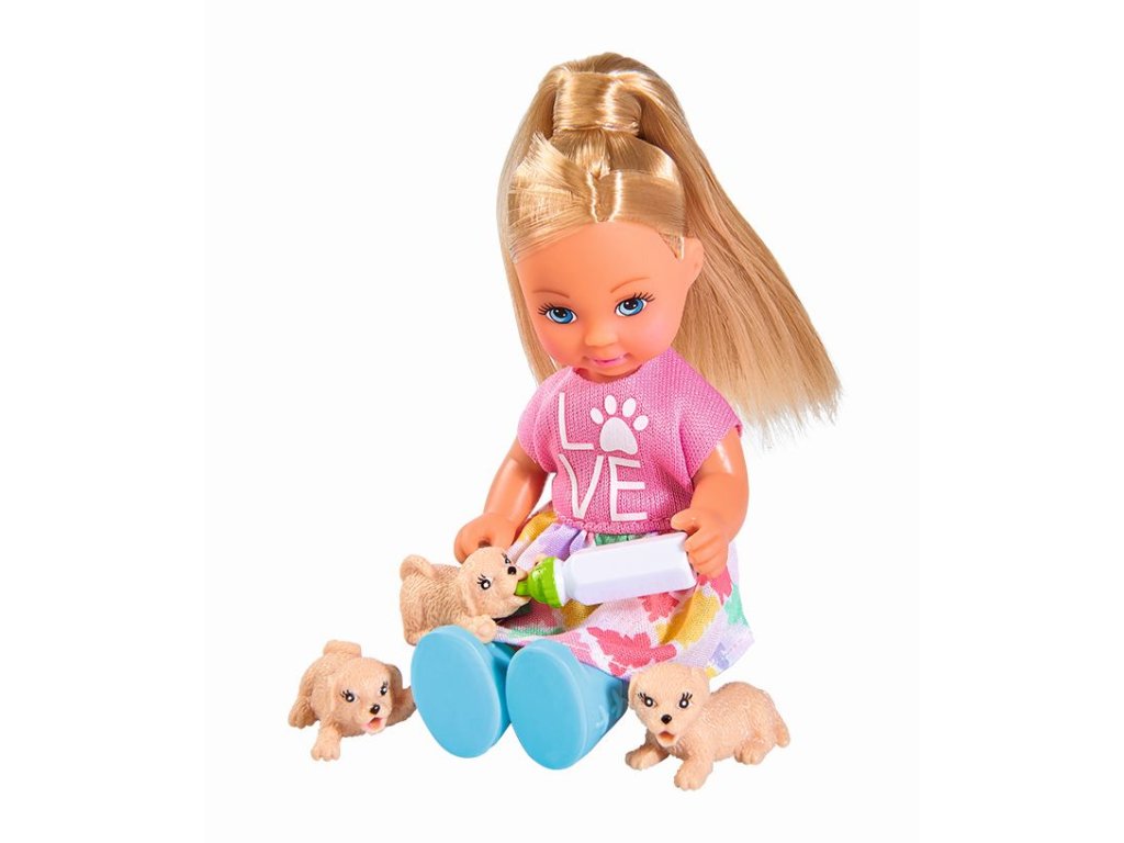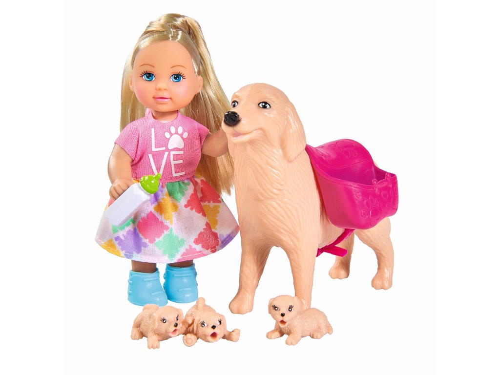 Panenka Evička se svým pejskem a 3 štěňátky. Příslušenství součástí. Velikost panenky 12 cm.