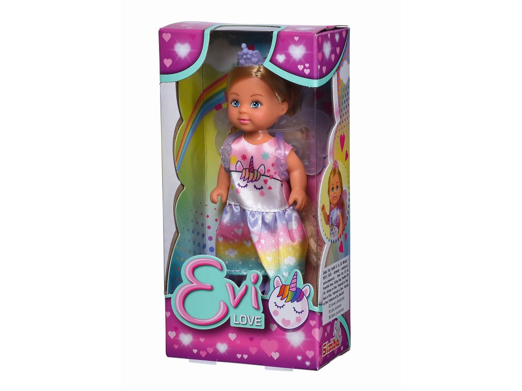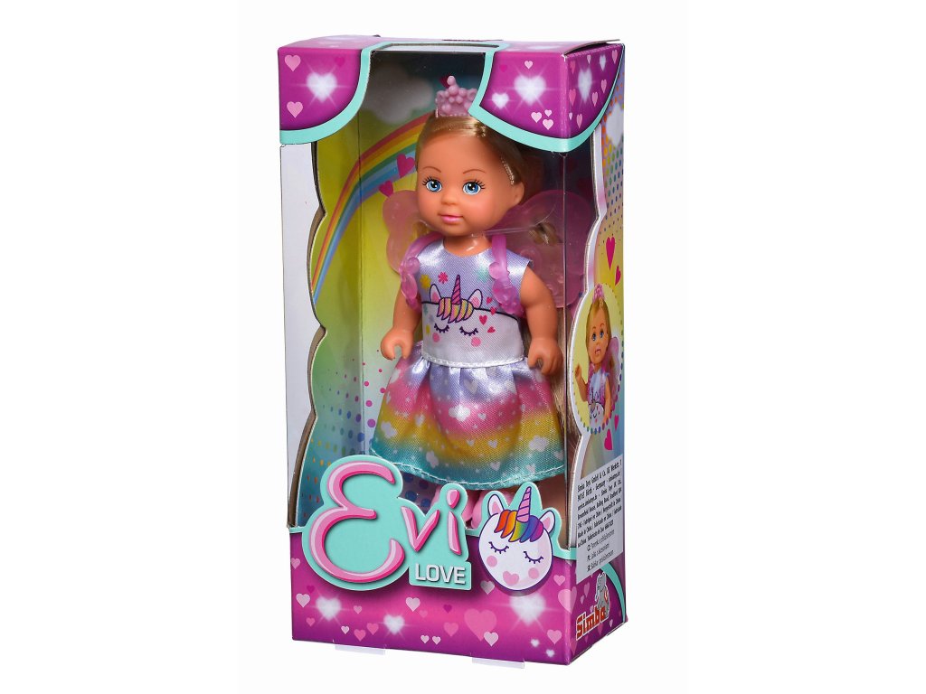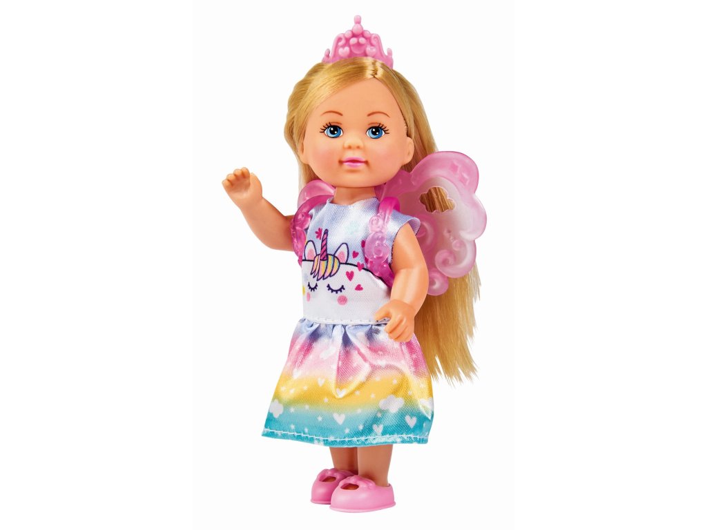 Panenka Evička jako roztomilá víla s potiskem jednorožce a odnímatelnými křídly. Výška panenky 12 cm.