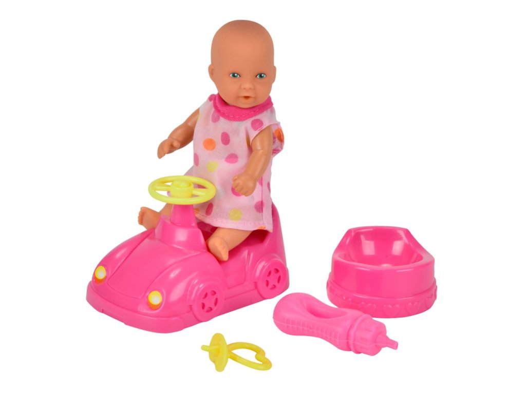 Panenka pije a čůrá, s příslušenstvím. Set obsahuje různé doplňky. S vaničkou, židličkou, hracím stolkem nebo autíčkem.