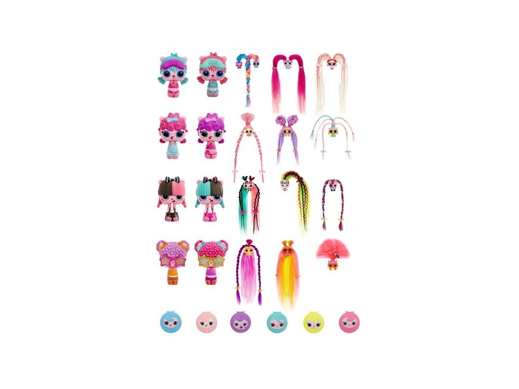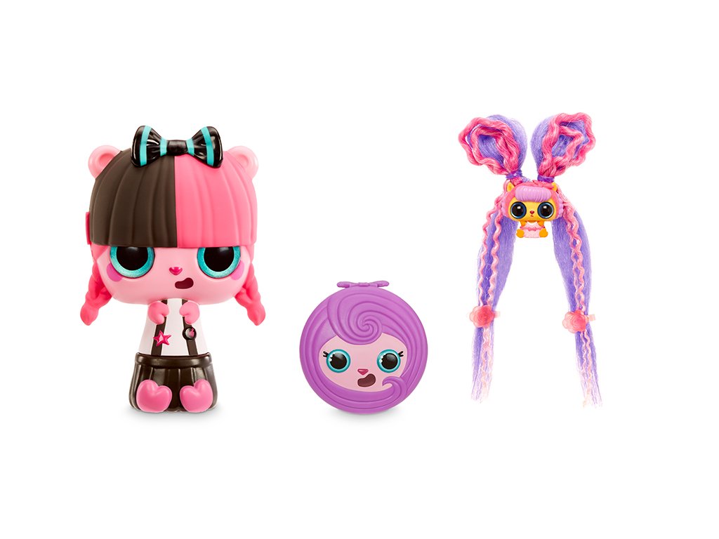 Objev, jaká panenka se skrývá v uzlíčku z vlasů! A budou vlasy vlnité nebo rovné? Jakou budou mít barvu? Vlasy si můžeš přidělat gumičkou do vlastního účesu.