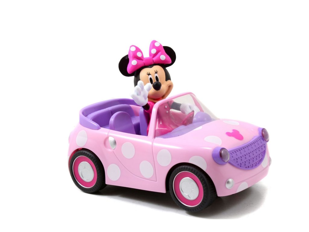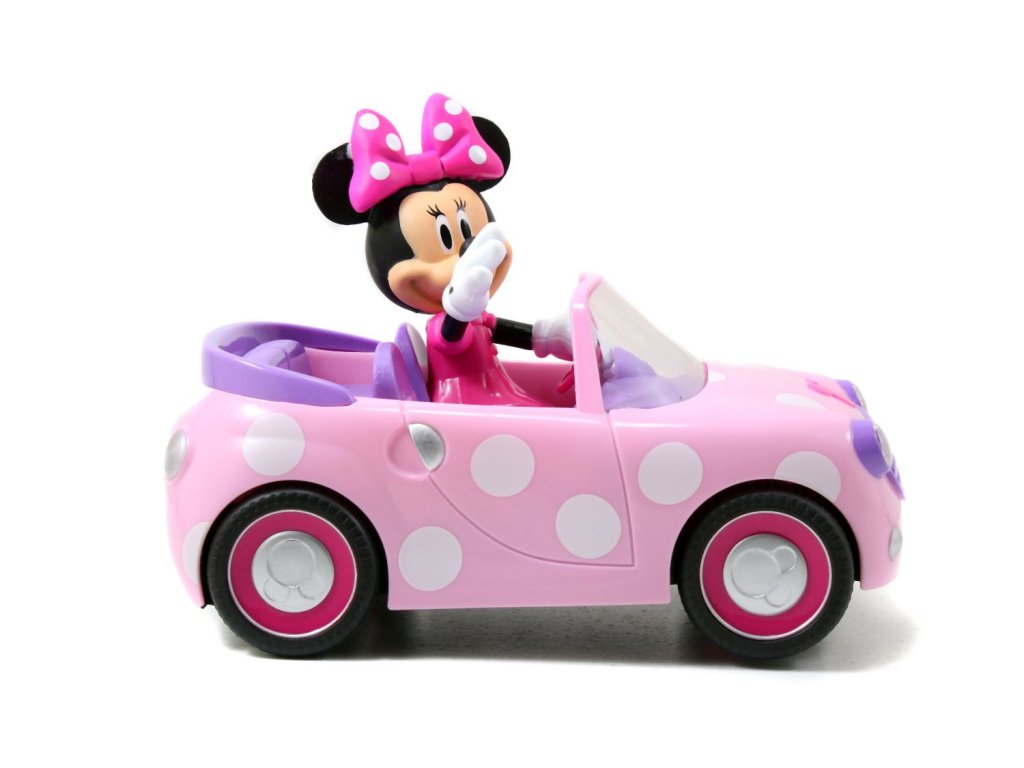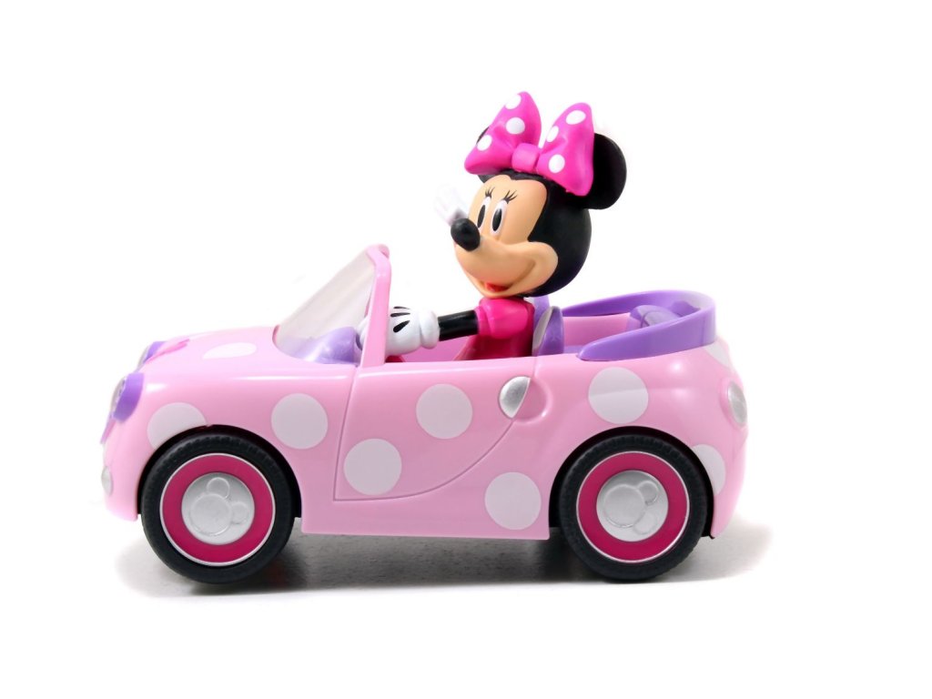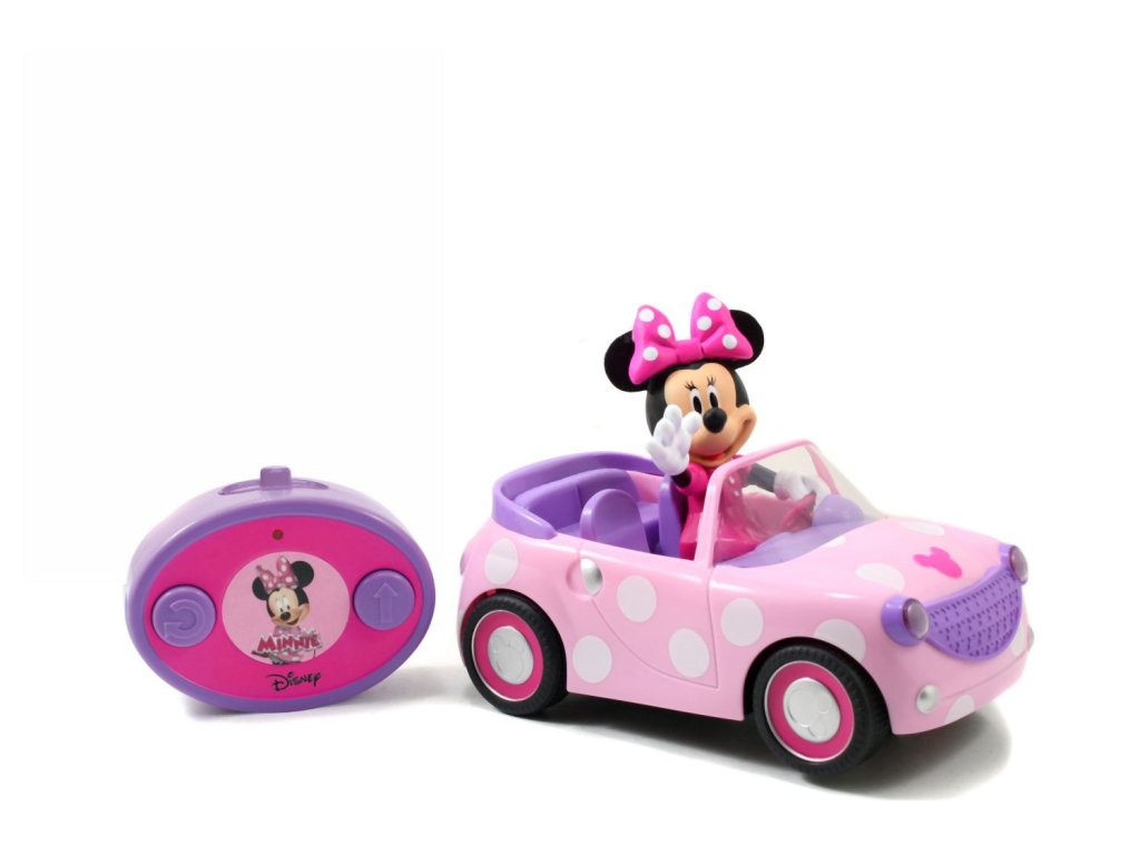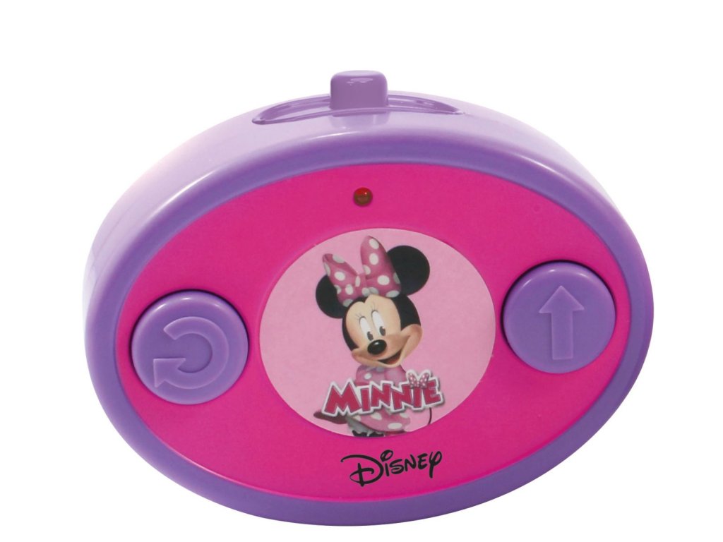 RC autíčko s Disney Minnie, 1-kanál, frekvence 2,4 GHz, jede vpřed rovně a vzad. V růžové barvě. Délka 19 cm.