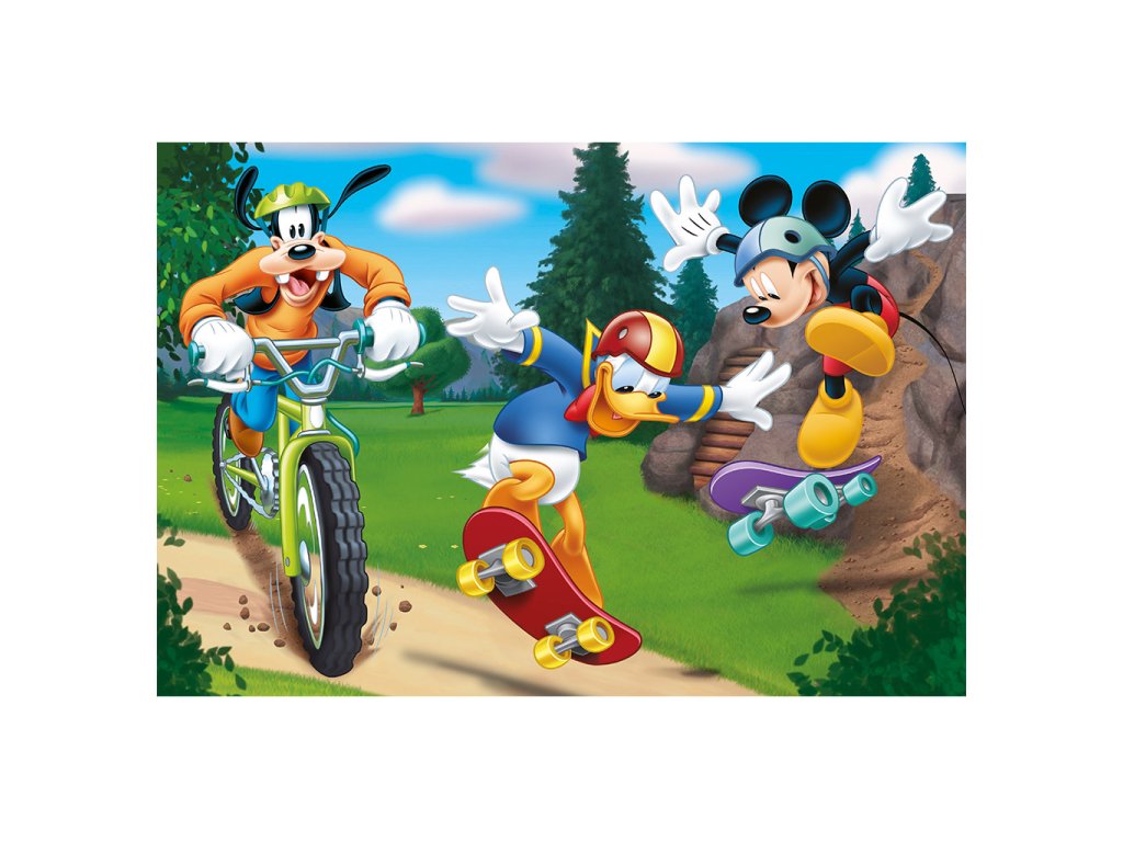 Dětské puzzle s 2 obrázky po 77 dílcích s motivy Mickeyho při sportu.