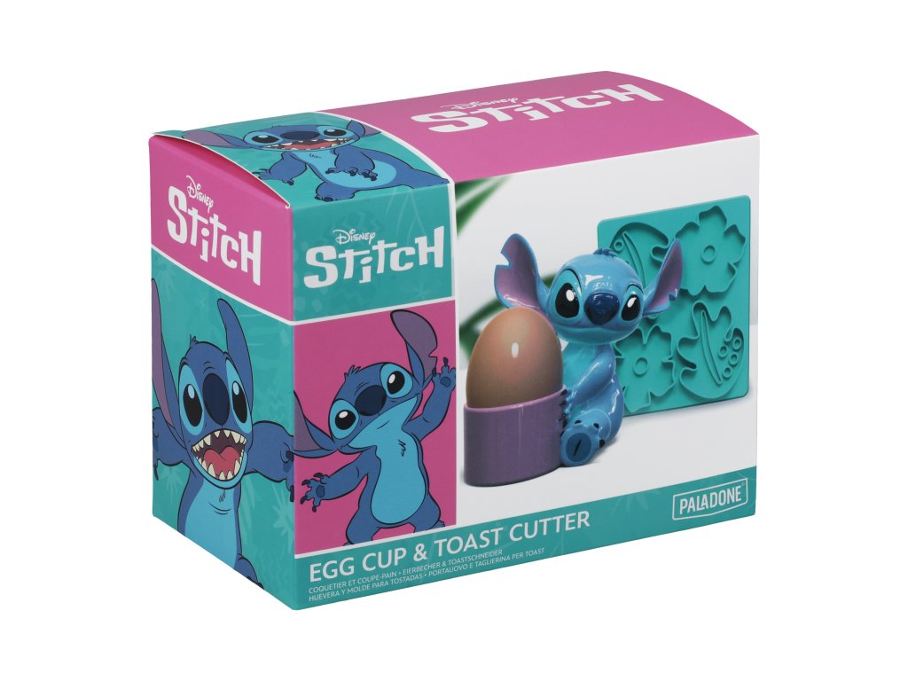 Kuchyňský set - obsahuje stojánek na vajíčko a zelenou formu na toust vyvedené v designu z filmu Lilo & Stitch. Stojánek na vajíčko je v designu roztomilého Stitche a je na 1 ks vajíčka. Plastová forma na toust poslouží jako vykrajovátko se 4 druhy vzoru na různé tvary toustů. Udělejte svým dětem snídani v zábavných tvarech a začněte tak své dny v kreativním stylu.