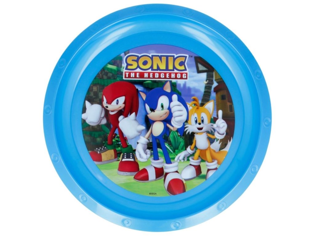 Modrá miska s grafikou postav z herní plošinovky Sonic the Hedgehog.