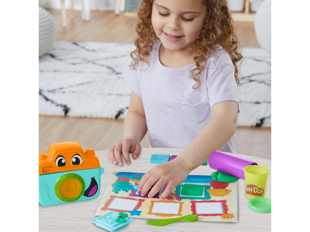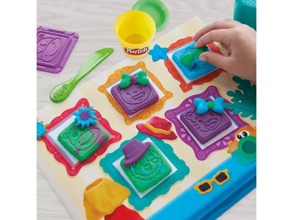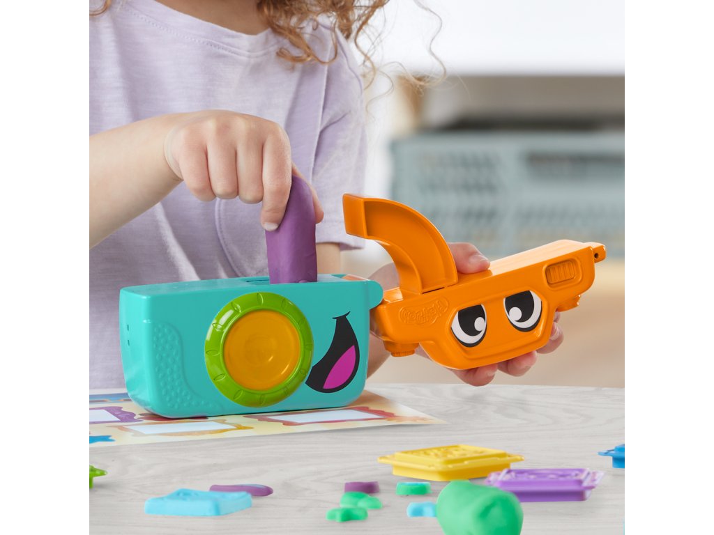 Zachyťte divoký svět tváří a pocitů se startovací sadou Foto zábava Play-Doh! Dětský fotoaparát vytlačuje ploché proužky Play-Doh, které vypadají jako film, a děti pak mohou pomocí 5 razítek vytvářet portréty zvířecích obličejů. Zvířecí obličeje můžete upravit pomocí legračních formiček, jako jsou kníry, klobouky, brýle a další. Nápaditá hra pro děti je ještě barevnější se 3 kelímky Play-Doh. Předškolní hračky, jako je tato sada Play-Doh starters, pomáhají dětem rozvíjet sociální a emocionální dovednosti a jemnou motoriku. Sada obsahuje: foto nástroj, podložku, 5 razítek, váleček, nůž a 3 kelímky modelíny (3 x 56 g). Rozměry balení: 17,78 x 20,32 x 6,66 cm. Věk: 2+