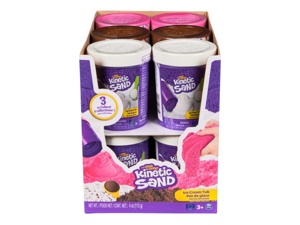 Naberte si zábavu s kinetickým pískem Zmrzlina ve vaničce! Tato tematická sada kinetického písku podnítí představivost, když děti naberou svůj kinetický písek z vaničky, stejně jako zmrzlinu! S více než 110 g růžového, bílého nebo hnědého písku, můžete pomocí nástroje prohrábnout a nabrat přes 300 g zmrzliny a vytvořit zmrzlinové poháry a kornouty. Míchejte a kombinujte vaničky (prodávají se zvlášť) a připravte si zmrzlinové dobroty inspirované Neapolí a odhalte na dně vaničky spirálovou formu pro více způsobů hry! Tento jedinečný kinetický písek je vyroben z přírodního písku, který se lepí k sobě pro snadný úklid. Nikdy nevyschne, takže můžete tvořit znovu a znovu. Nechte ho protékat vašima rukama –? je to tak uspokojující, že ho nebudete moci odložit! Pro snadné skladování slouží vanička i jako nádoba pro sbalení písku a lopatky nebo pro přepravu na cestách! Kinetický písek je skvělou alternativou k výtvarné a řemeslné modelíně a je vítaným doplňkem k tvořivé dílně, senzorickým hrám, dětským aktivitám a Montessori hračkám. Kinetický písek podporuje jemnou motoriku a kreativitu u dětí od 3 let prostřednictvím nezávislé hmatové hry. Podávejte zmrzlinu z kinetického písku ve vaničce!