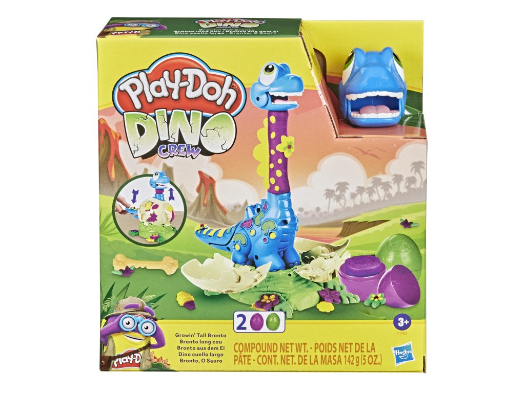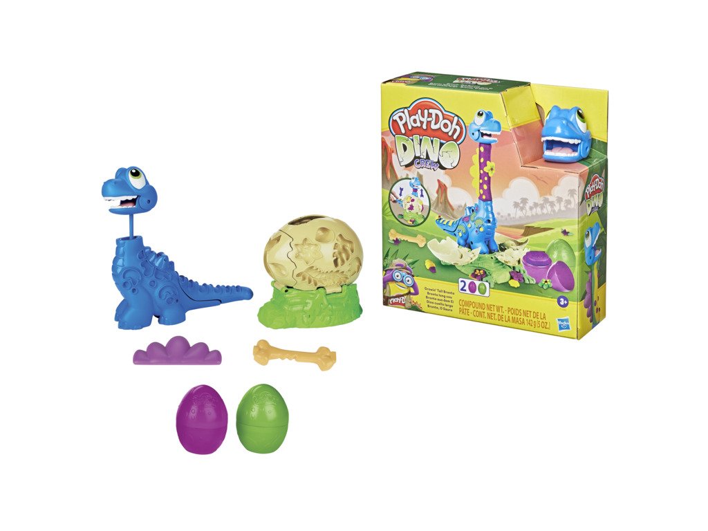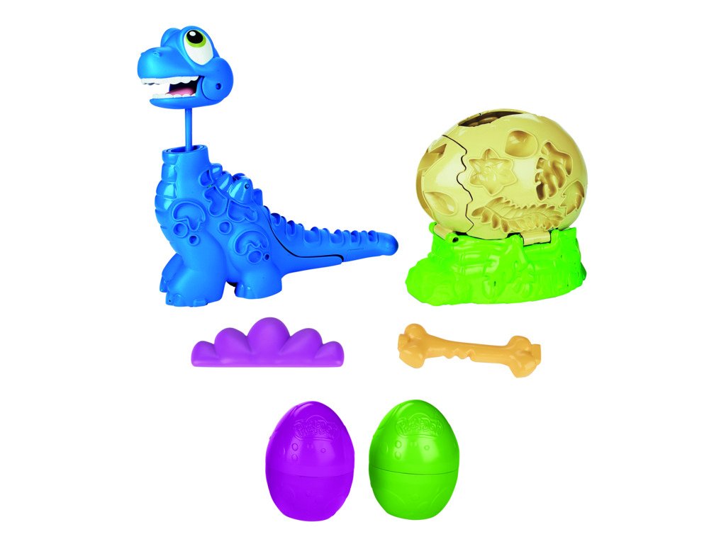 Toto maličké brontosauří miminko se nemůže dočkat, až vykoukne z vajíčka! Pořádně ho nakrmte modelínou Play-Doh, až ocasem rozbije vajíčko – a sledujte, jak jeho krk roste stále výš a výš. Pomocí přiložených formiček pro něj vytvořte bláznivého motýlka nebo další doplňky. Modelínu Play-Doh najdete v nádobkách ve tvaru vejce, takže si užijete dinosauří legraci.
