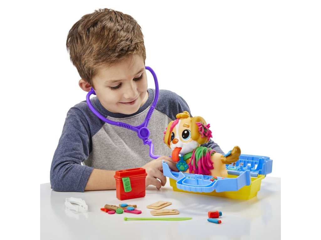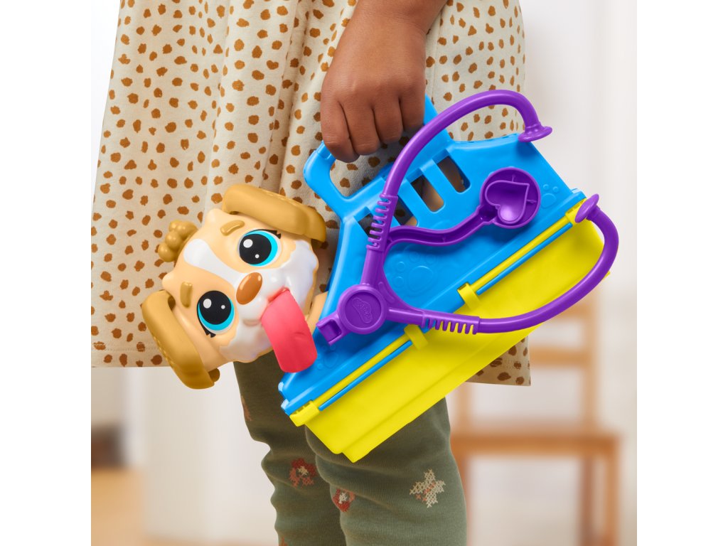 Na tohle štěňátko by se měl někdo podívat! Žádný strach, o rozkošného pejska se rádi postarají malincí veterináři. Fantazii se meze nekladou. Může vyplazovat jazyk a má několik šmrncovních stylů! Štěňátko si navíc může vlézt do roztomilé přepravky, kam se dají umístit všechny doplňky. Každý správný veterinář musí mít samozřejmě po ruce příslušenství, jako jsou nůžky na péči o srst, stetoskop a další. Tenhle nádherný dárek je prostě zárukou skvělé zábavy!