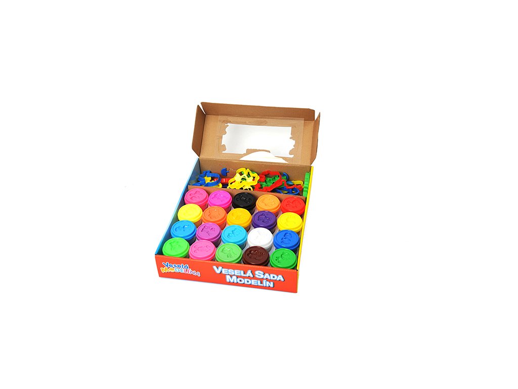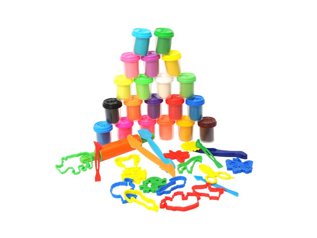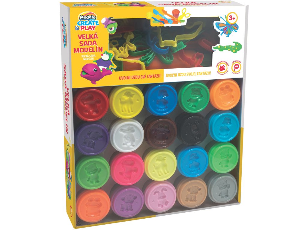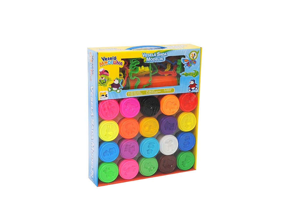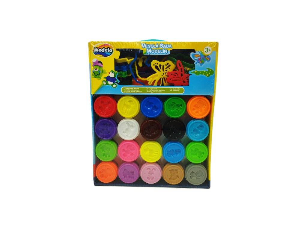 Skvělá velká sada modelín, která obsahuje 20 kelímků a spostu tvarovátek a vykrajovátek na tvoření.