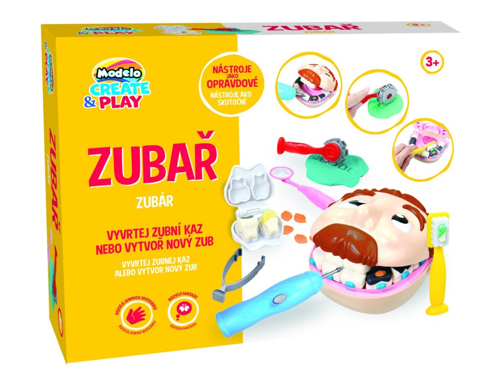 Vymodeluj zub, nasaď rovnátka, vyvrtej kaz a zaplombuj. Zábavná zubařská modelovací sada. Modelína je dobře tvarovatelná, nebarví, nevysychá. Hraní s modelínou rozvíjí u dětí jemnou motoriku a fantazii.