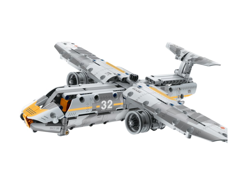 iM.Master Stavebnice letadlo vojenské. Rozměry 37,5x30,2x11 cm. 329 dílků. Vyklápěcí nákladová plocha, otočné vrtule.