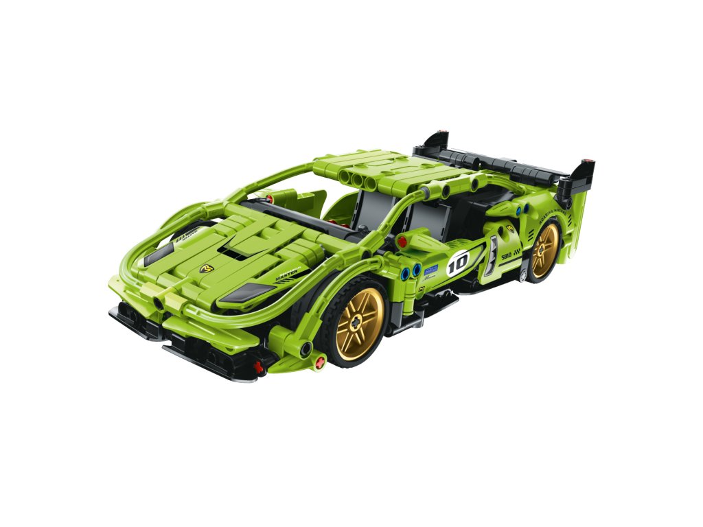 iM.Master Stavebnice závodní auto zelené. Rozměry 25x11,4x6,6 cm. 457 dílků. Na zpětné natažení. Otevírací dveře.