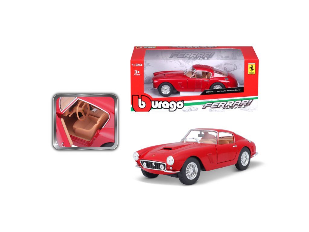 Bburago - RACE+PLAY, Ferrari 250 GT Berlinetta Passo Corto, červená, 1:24