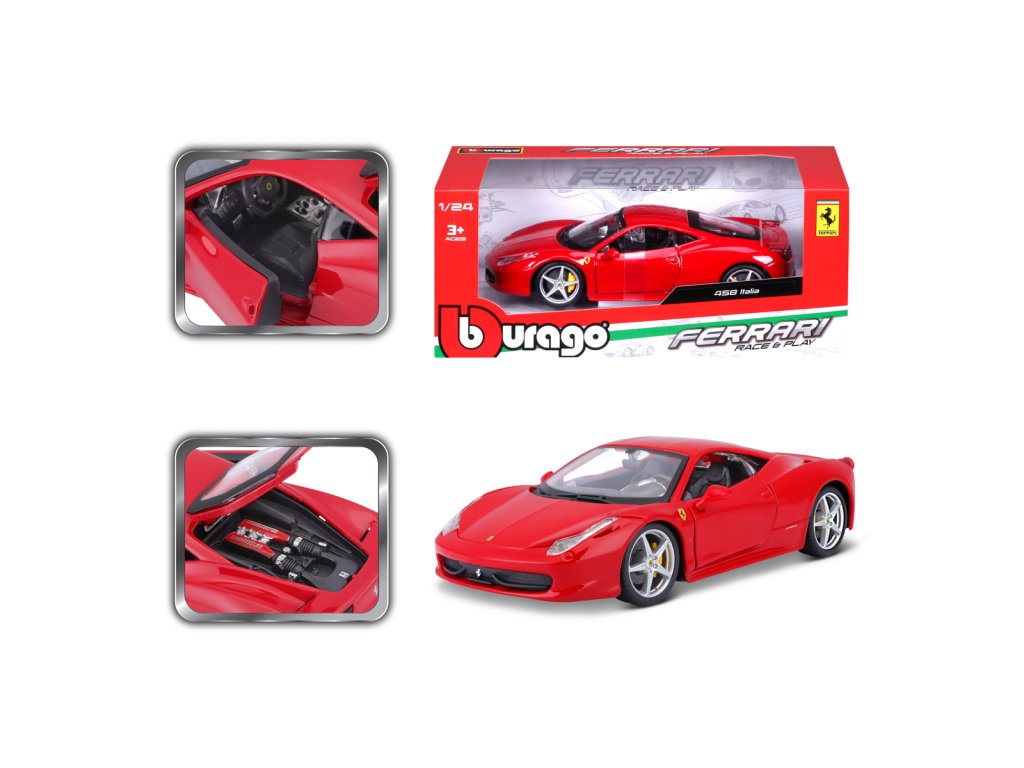 Bburago - RACE+PLAY, Ferrari 458 Italia, červená, 1:24
