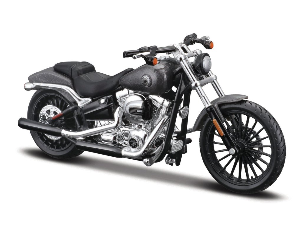 Harley-Davidson Motorcycles 1:18 2016 Breakout®, černá. Model ze série 40 collection v měřítku 1:18 má velmi dokonalé, detailní provedení jednotlivých částí a kvalitní barevné provedení. Kovový model s plastovými doplňky. Model má řiditelnou vidlici, pohyblivý boční stojan. Nevhodné pro děti do 3 let. Rozměry balení: 10,6 x 17,78 x 6,35 cm. Věk: 3+
