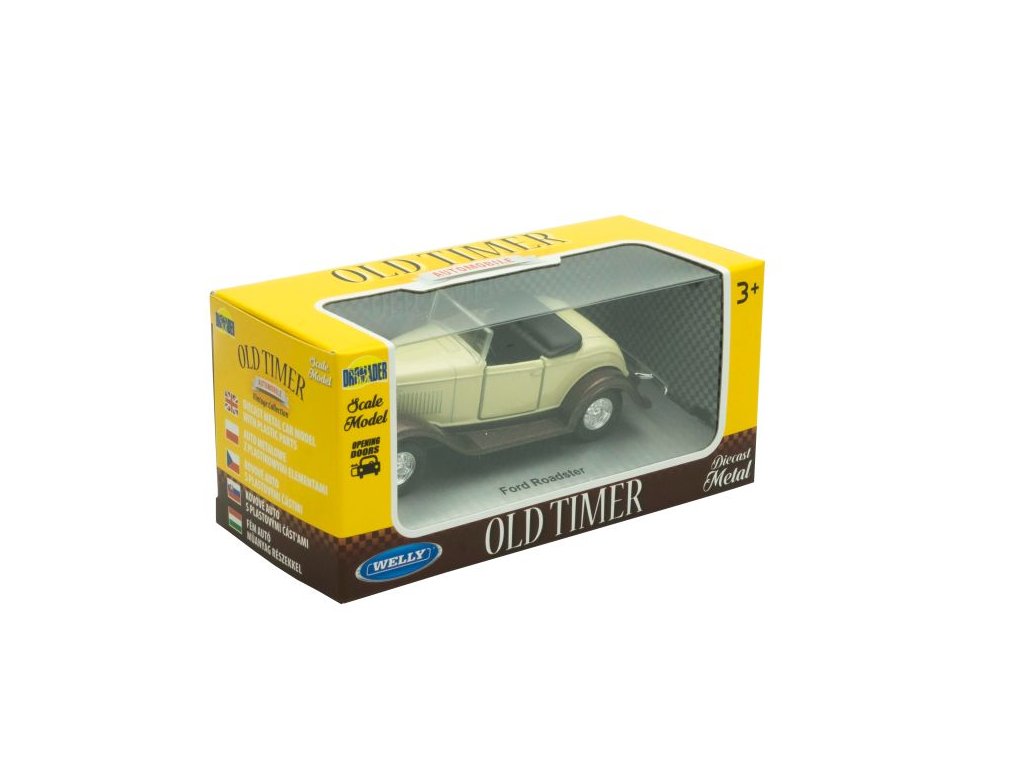 Model auta Old Time série v krabičce, kovová karoserie, pohon na volnoběh. Velikost auta přibližně 10 - 12 cm dle modelu. Autům se dají otrevírat přední dveře. Pěkné provedení, vhodné jako sběratelský kousek nebo na hraní pro Vaše děti. Doporučeno od 3 let. Nelze vybrat druh, dodáváme dle skladové dostupnosti.