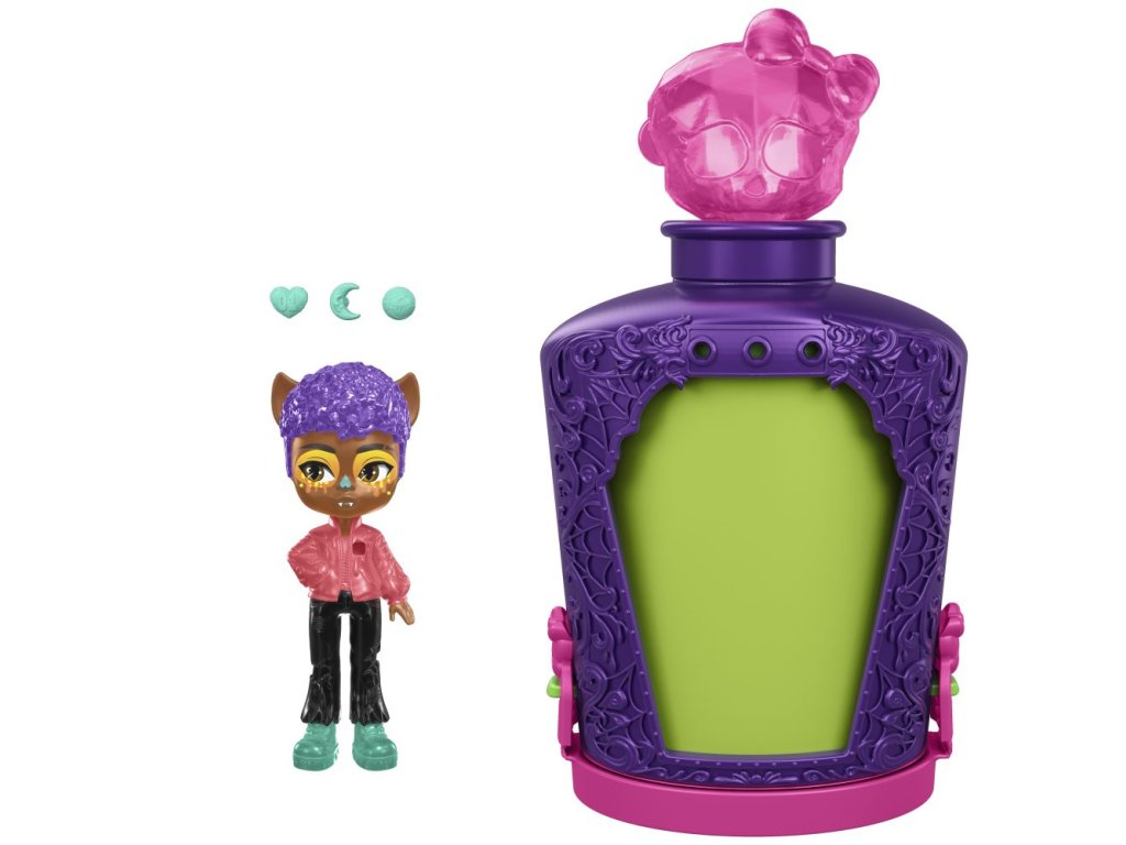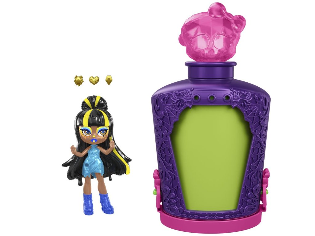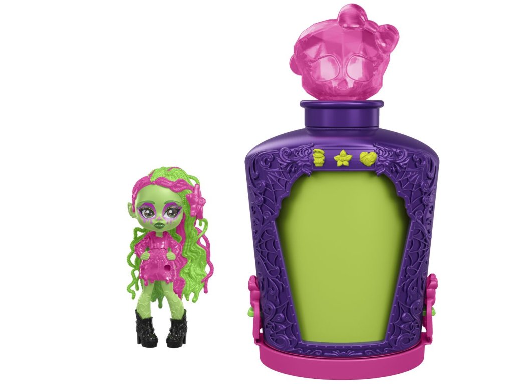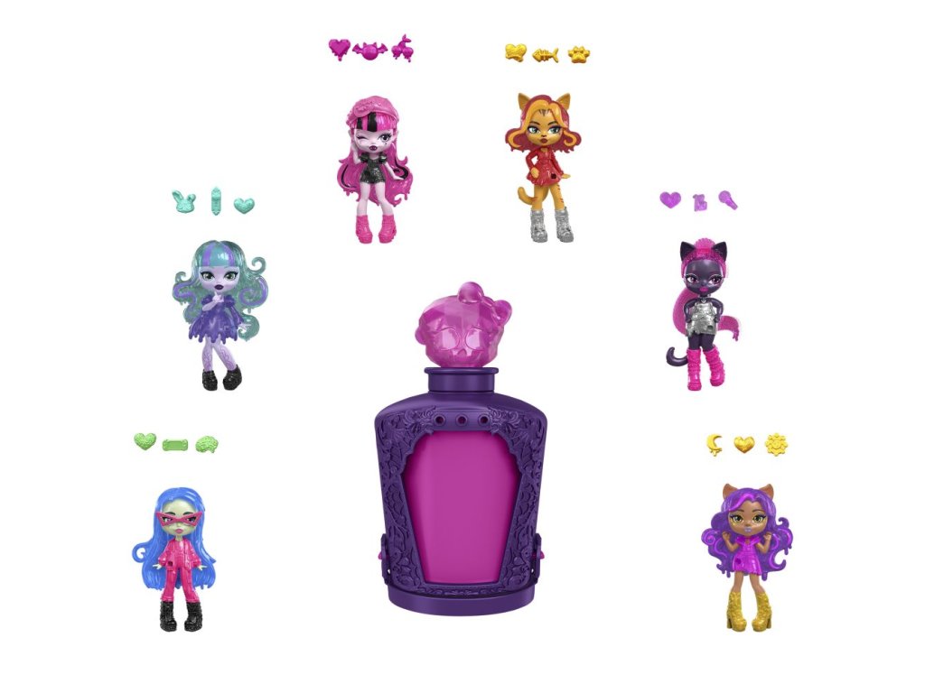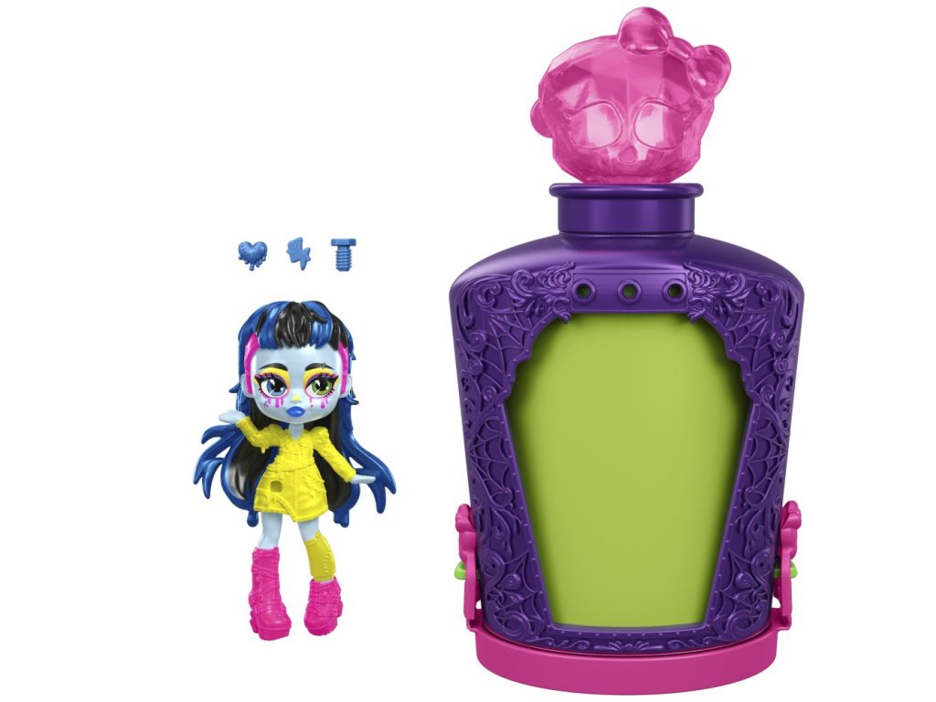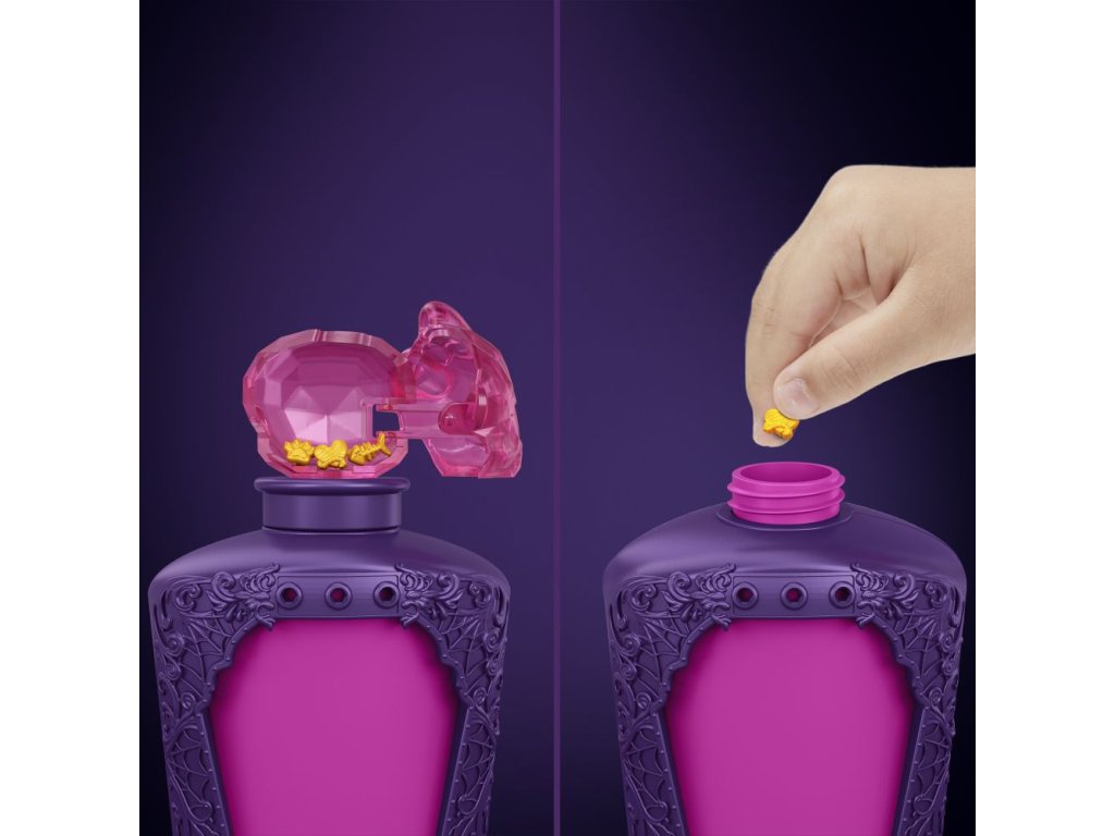 Darujte Monster High™ panenku v děsivé velikosti! Stačí namíchat lektvar a získáte strašidelné překvapení. Herní set Monster High™ Elixíry s malou monsterkou obsahuje kouzelné lahvičky s přibližně 7 cm velkou figurkou oblíbené příšerky Monster High™ a tři "kouzelné" přívěsky pro vlastní zábavu! Uvařte lektvar ve čtyřech krocích: do lahvičky nalijte vodu a vložte do ní přívěsky, protřepejte a sledujte, jak se tvoří lektvar, vylijte směs a pak odhalte panenku!