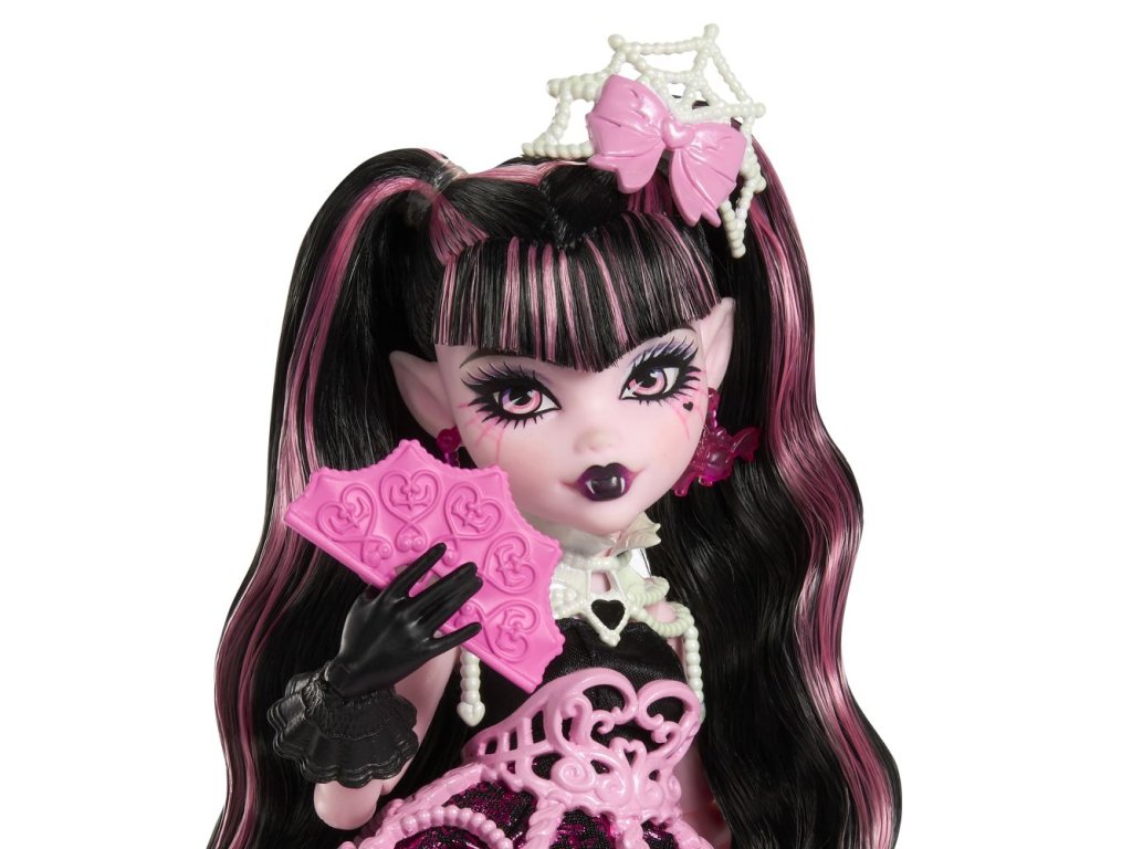 Draculaura pořádá děsivě sladkou narozeninovou párty – a její kámošky z Monster High míří na tuhle oslavu století! Není každý den, kdy monsterka slaví 1600. narozeniny, takže co jiného by se hodilo víc než pořádná párty? Každá panenka z této kolekce je oblečená do parádně děsivého outfitu a přichází s balónky, pozvánkami, narozeninovými přáníčky, dárky a dalšími doplňky. Díky tolika cool doplňkům je jasné, že tahle párty bude neuvěřitelná! Každá panenka se prodává samostatně podle dostupnosti. Panenky nestojí samostatně. Barvy a vzhled výrobku se mohou lišit.