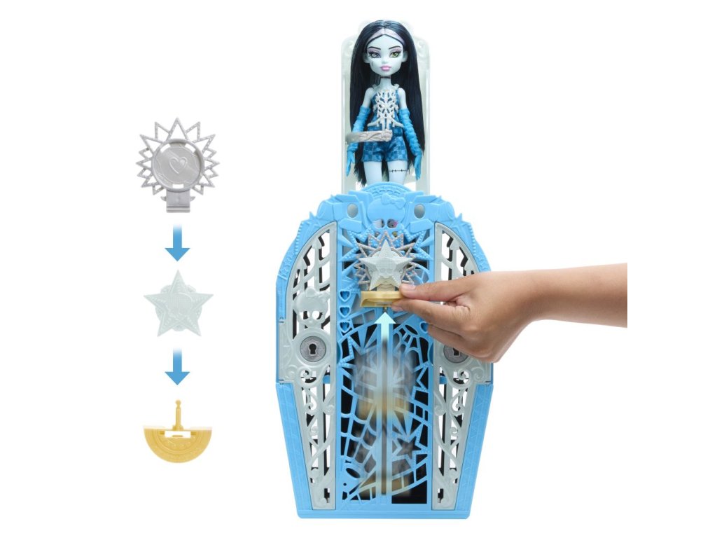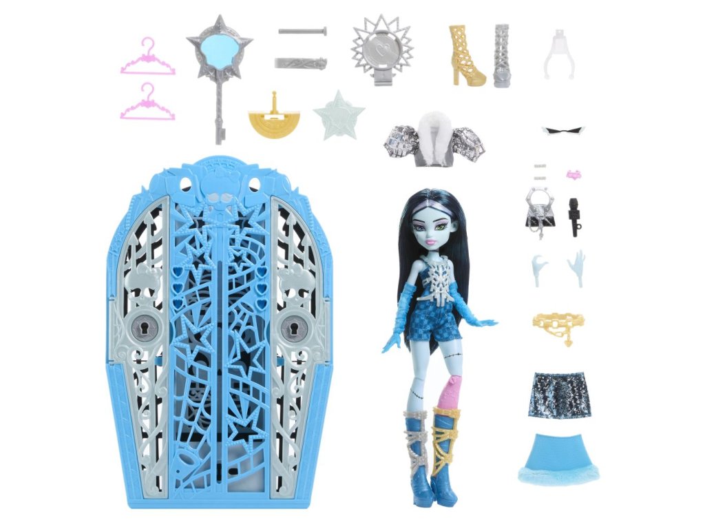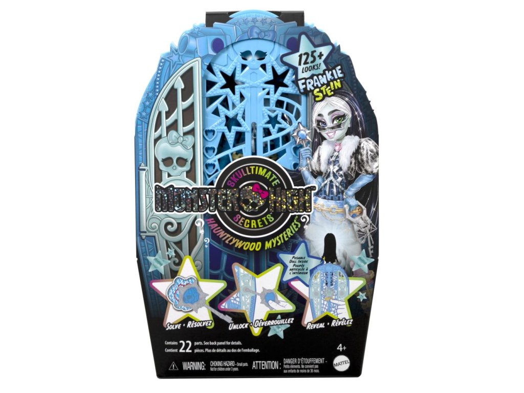 Odhalte tajemství Hauntlywoodu s Monster High! Vyřešte záhadu, otevřete brány Hauntlywoodu a odhalte kloubovou panenku Monster High. Děti se mohou stát strašidelnými detektivy a hledat stopy na mapě pomocí „kouzelného“ zvětšovacího klíče. Po cestě je čeká více než 19 úžasných překvapení, včetně třpytivých oblečků, děsivých rukavic a oslnivého šperku. Po skončení hraní si děti mohou uklidit monsterku, oblečení a doplňky do hvězdného šatníku, který je ideální nejen pro ukládání, ale i pro vyprávění příběhů. Každá panenka se prodává samostatně v závislosti na dostupnosti. Panenky neumí samostatně stát. Barvy a vzhled výrobku se mohou lišit.