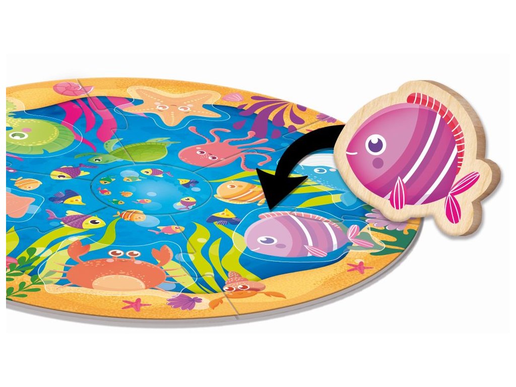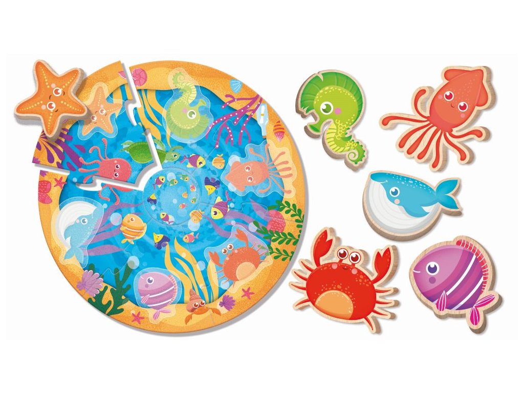 Kulaté puzzle vhodné pro cvičení hmatu a logiky. Vhodné pro děti od 1 roku.