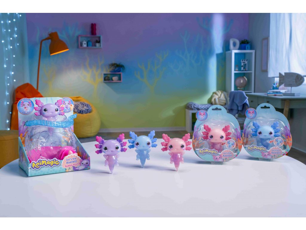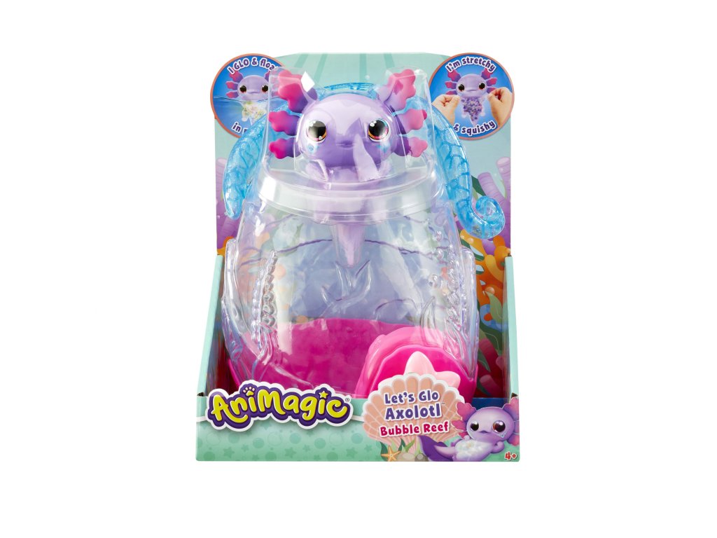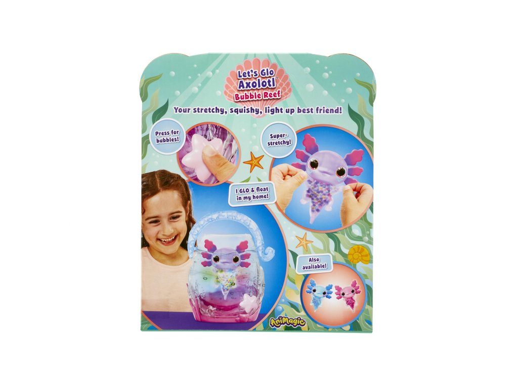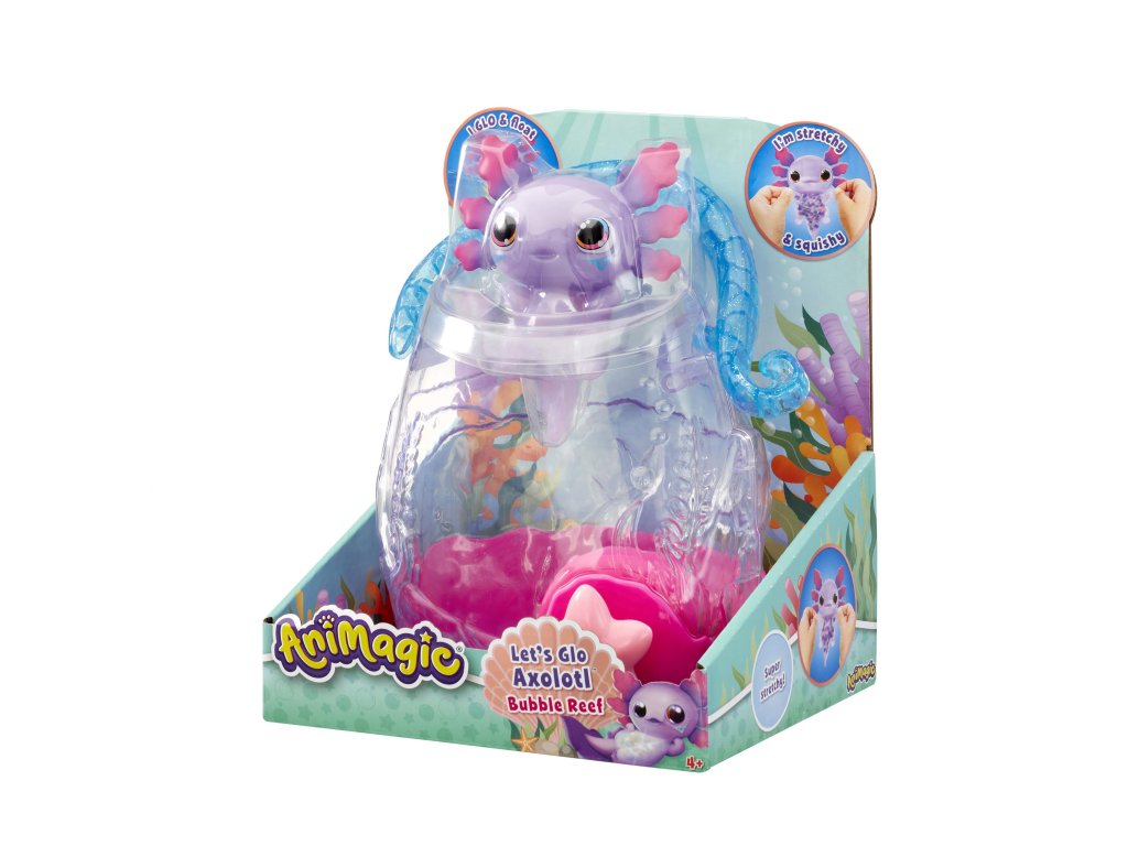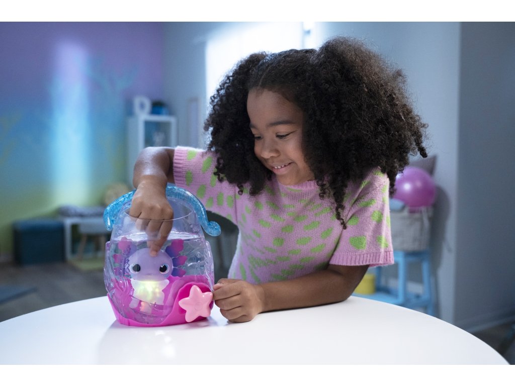 Figurka axolotla, která po ponoření do vody začne svítit. Tato hračka je vyrobena z měkkého, pružného materiálu, který je příjemný pro dětské ručičky. Akvárium pro axolotla, kde můžeš tvořit bubliny.