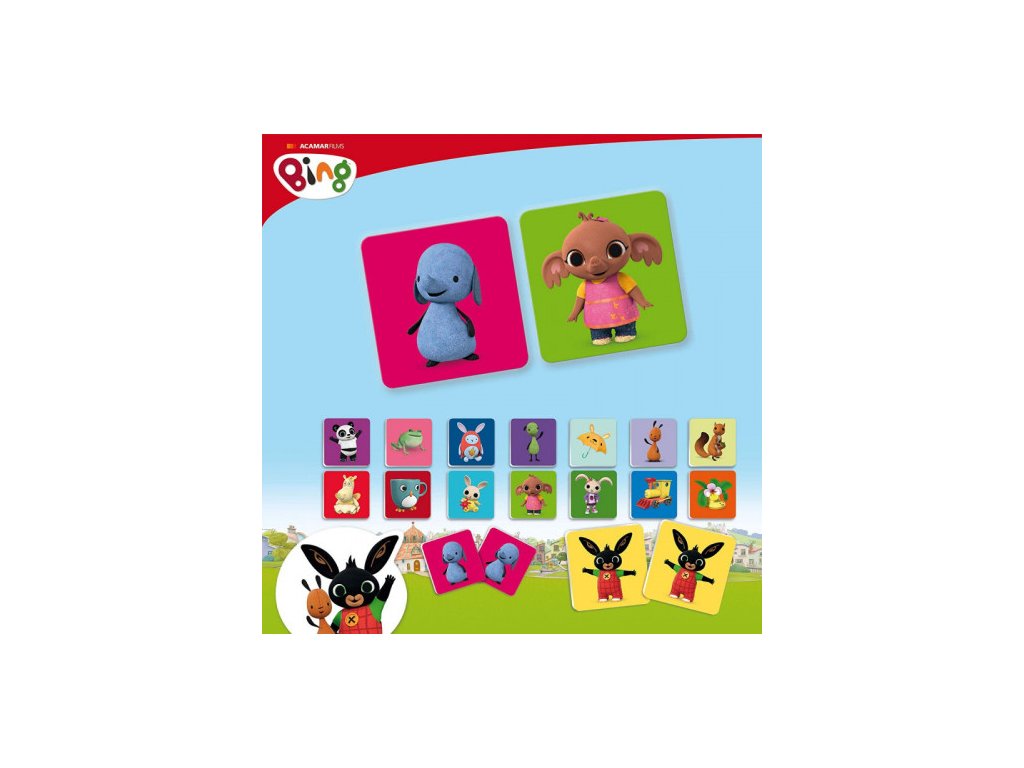 Pexeso s motivem oblíbeného dětského hrdiny králíčka Binga a jeho kamarádů. Doporučený věk od 1 roku.