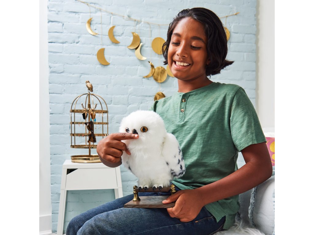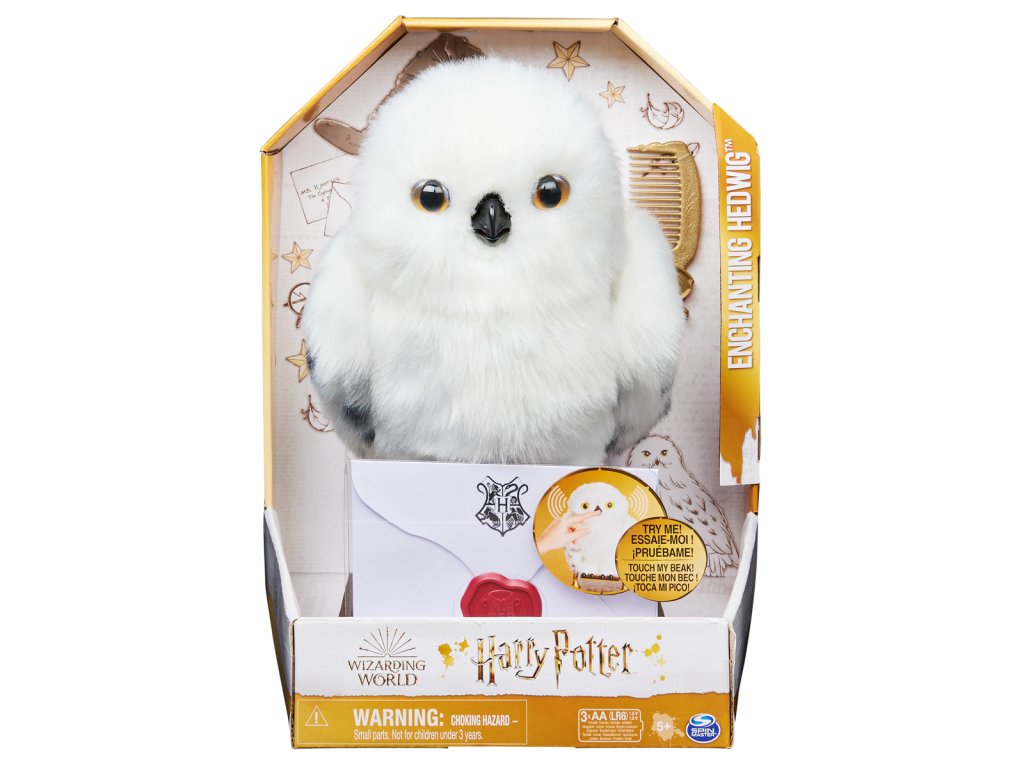 Interaktivní sova Hedvika umí otáčet hlavou až o 270°, mávat křídly a má hebounké peří. Dokáže rozeznat, jakým tónem hlasu na ni promluvíš a takovým tónem Ti i odpoví. Dej Hedvice obálku se zprávou, bude reagovat a vezme si ji do zobáku. Součástí balení jsou 3 AA baterie. Velikost 30cm. Vhodné od 5 let.