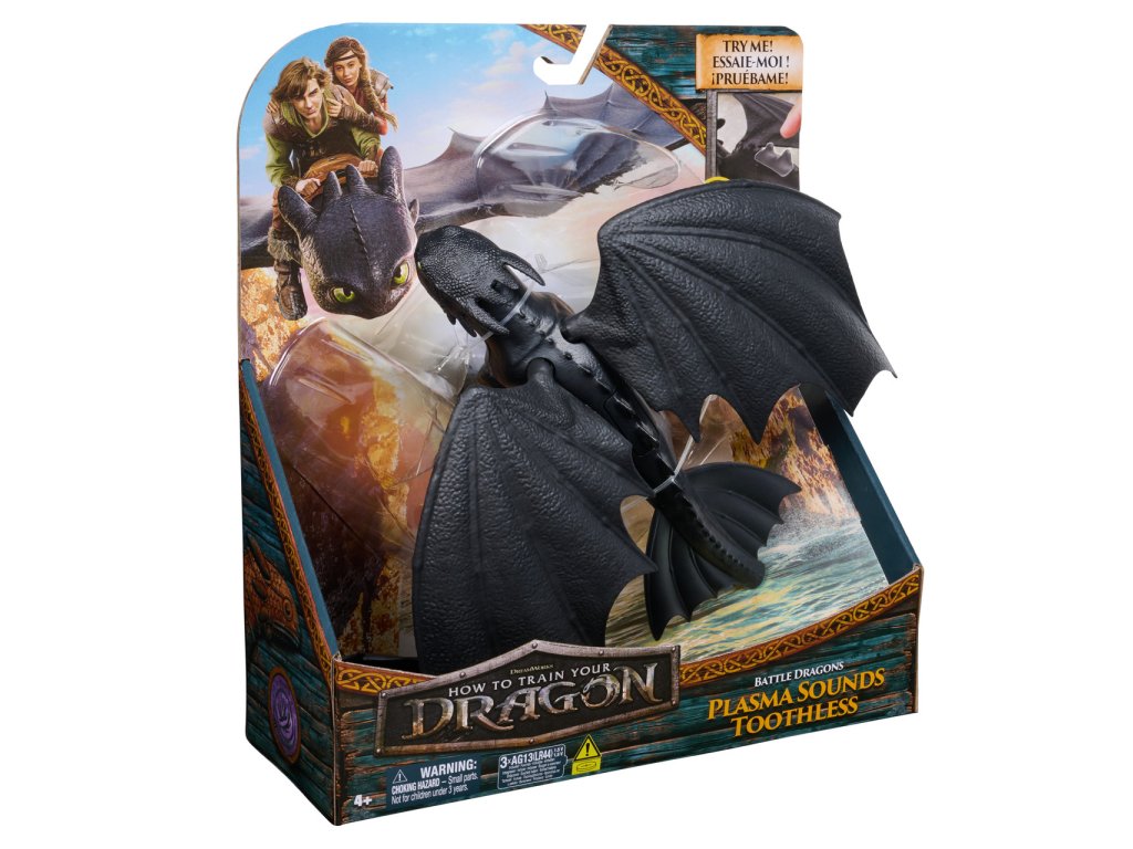 Figurka draka Bezzubky mává křídly a vydává charakteristické zvuky.