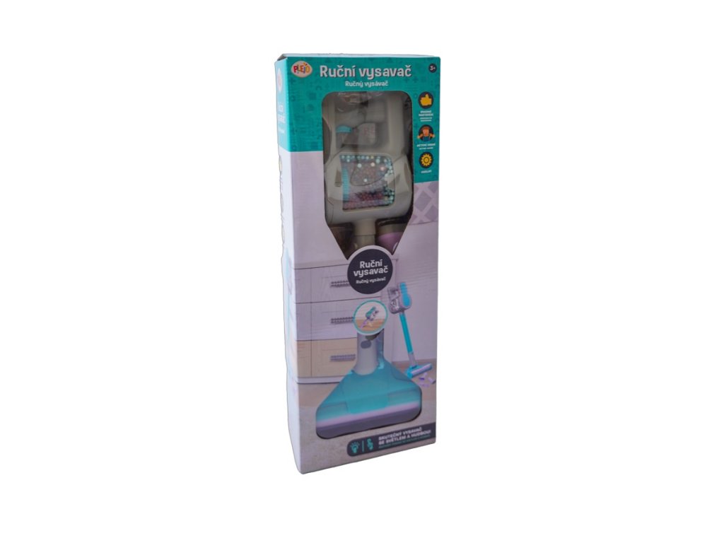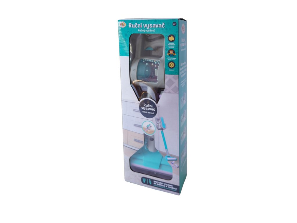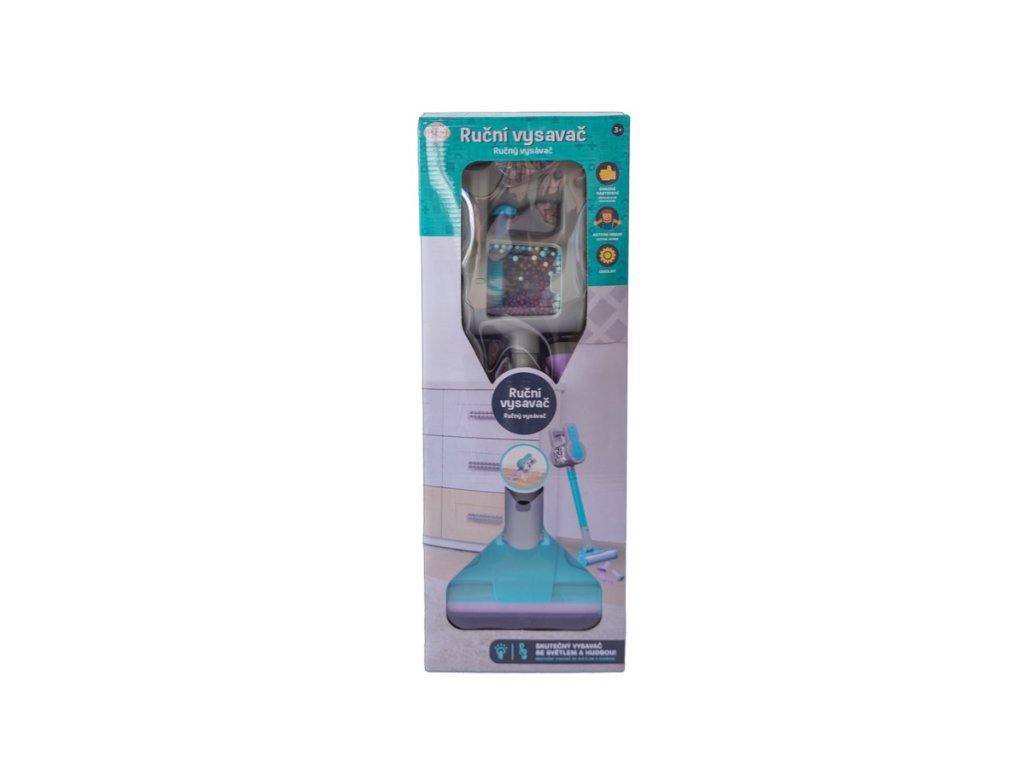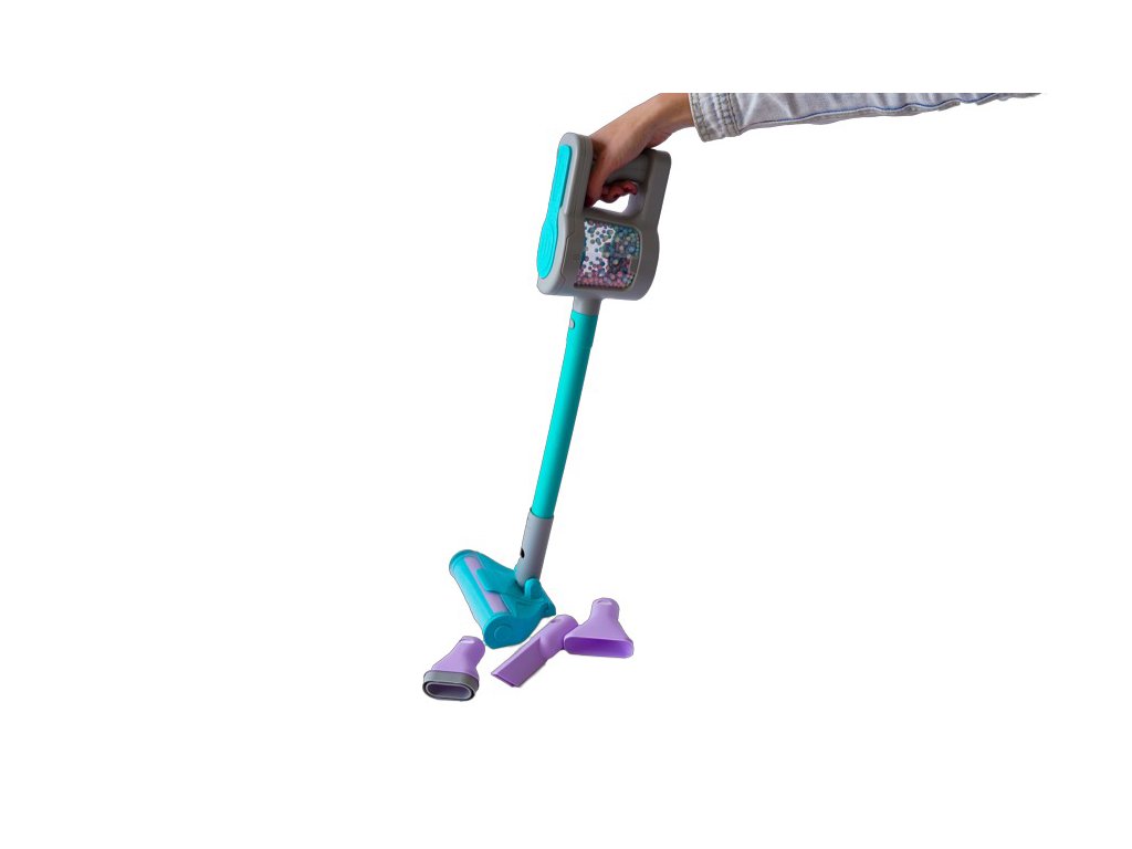Ruční vysavač s vyměnitelnými nástavci. Vysavač je na baterie a vydává zvuk sání. Každá hospodyňka si tento vysavač zamiluje. Je vždy po ruce.