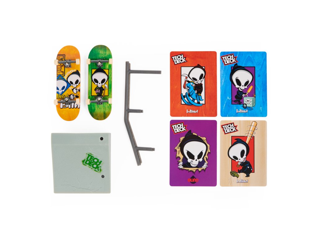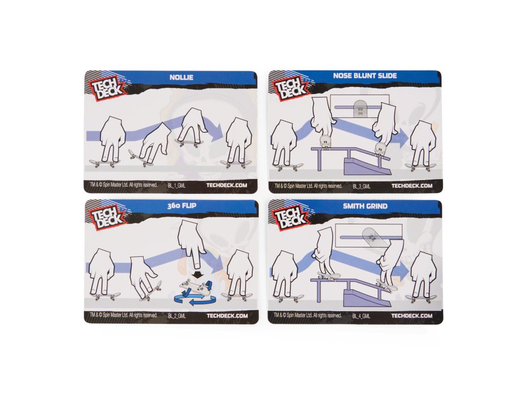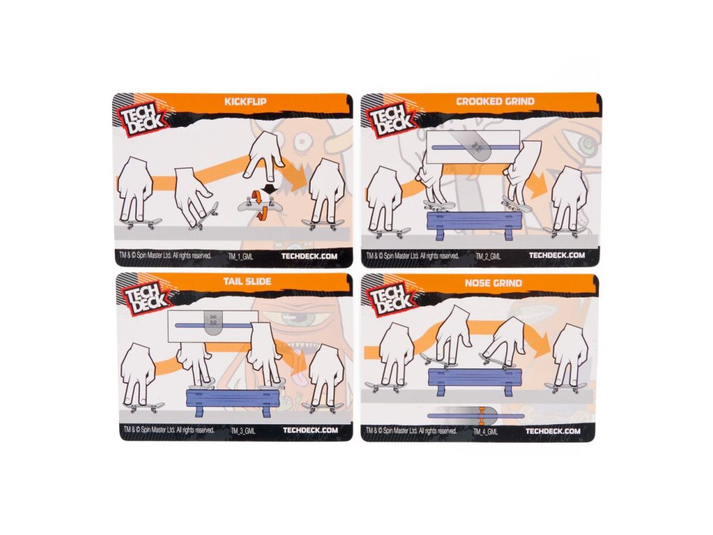 Vyber si z široké škály zcela nových originálních tvarů a stylů fingerboardů. Tyhle malé skateboardy ovládáš pomocí prstů. Nauč se co nejvíce triků. V balení najdeš 2 stylová sestavená prkna, 1 překážku, 4 karty s triky k učení. Vhodné od 6ti let.