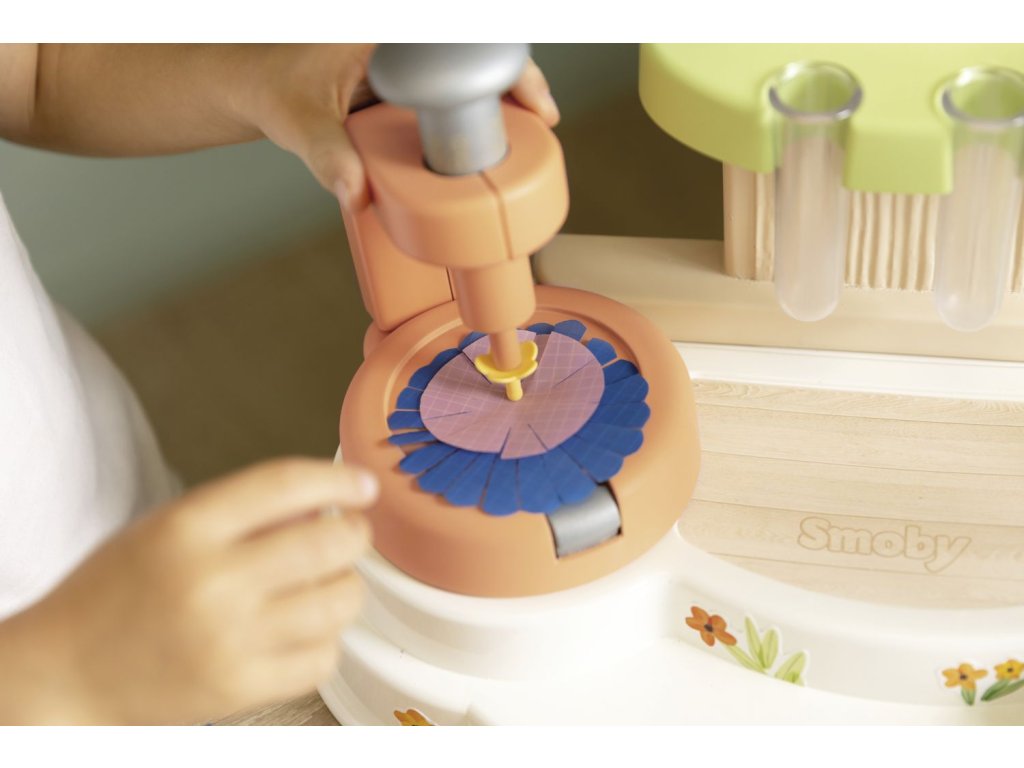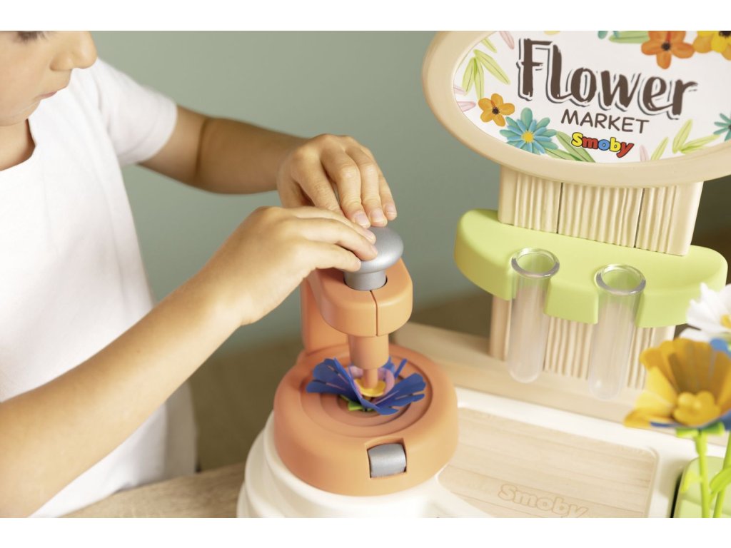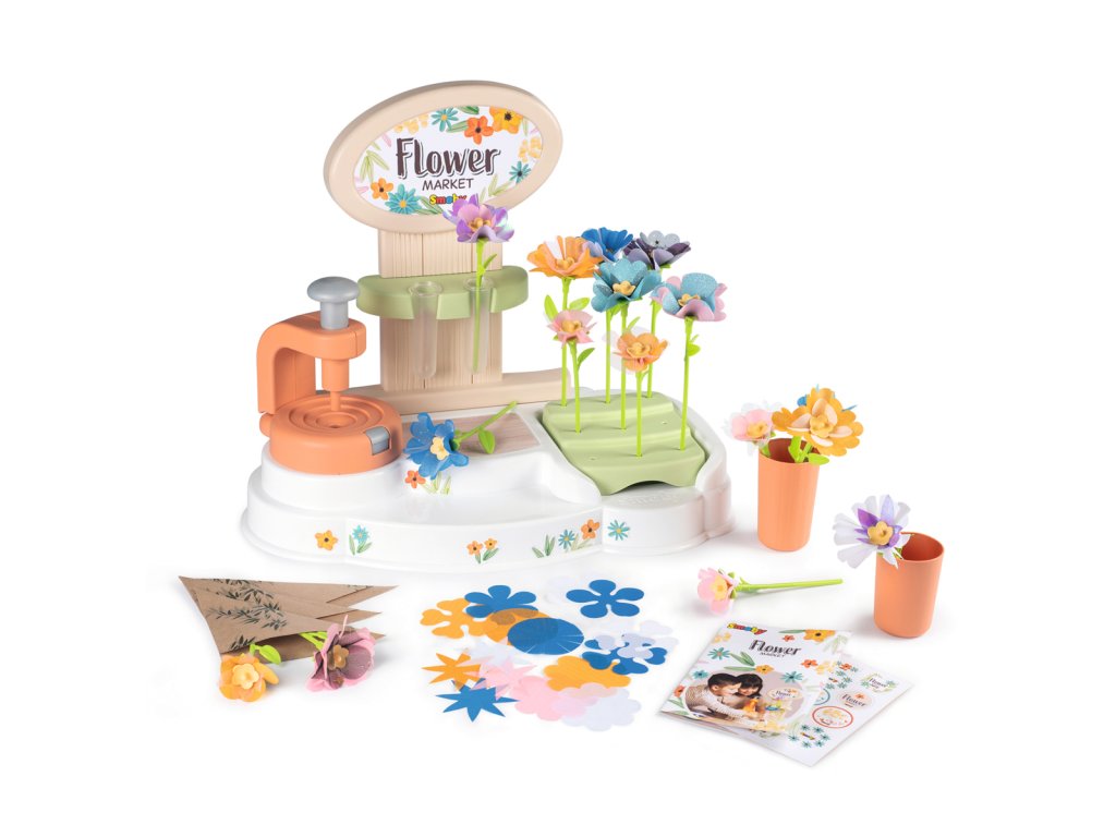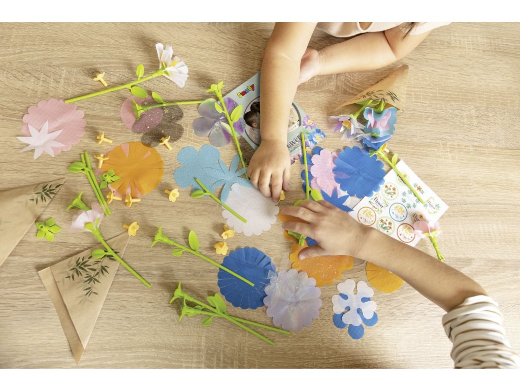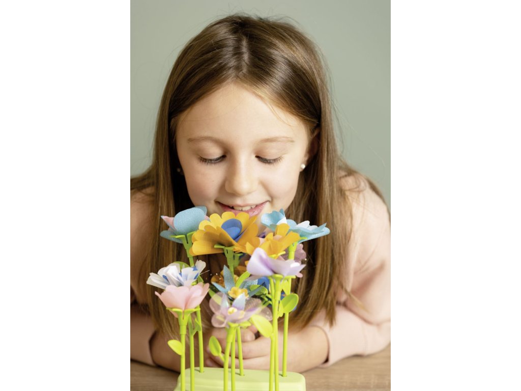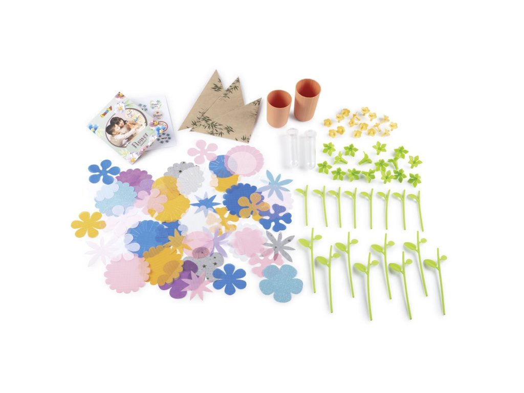 Kreativní sada obsahuje stroj na výrobu květin. Dále mnoho doplňků, např. stonky, květiny, razítka, vázy, papírové tašky, samolepky. Rozměry rozbaleného výrobku: 44,50 x 37,30 x 24,50 cm.