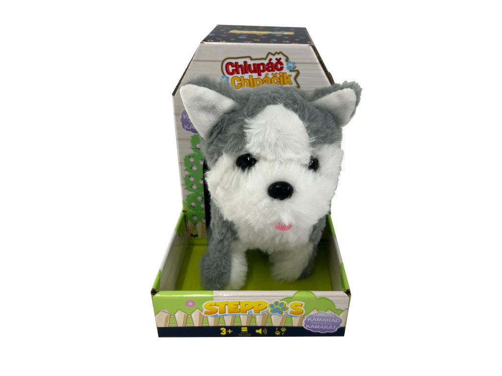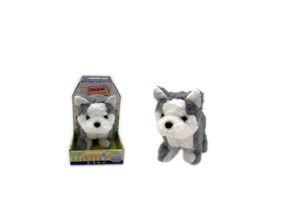 Pejsek na baterie, který chodí, štěká a hýbe ocáskem.