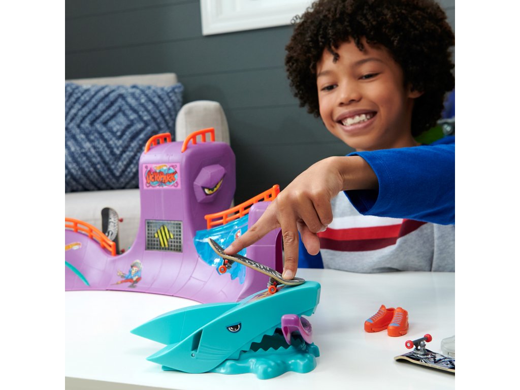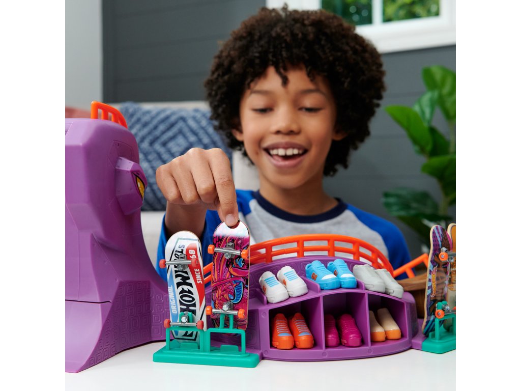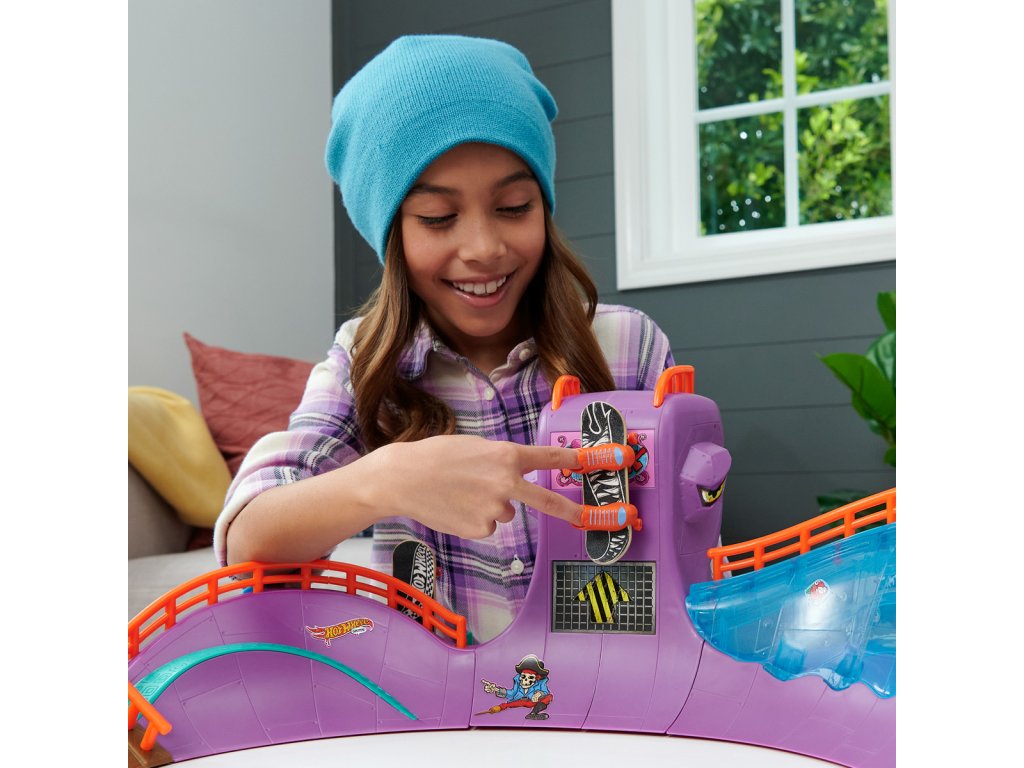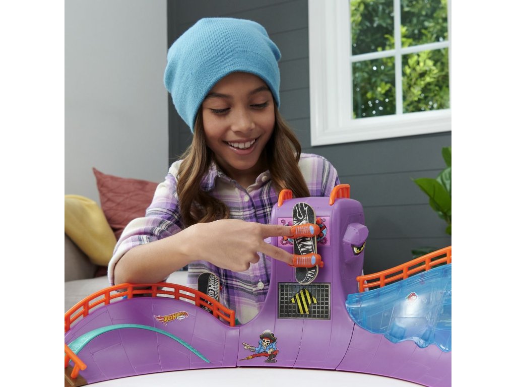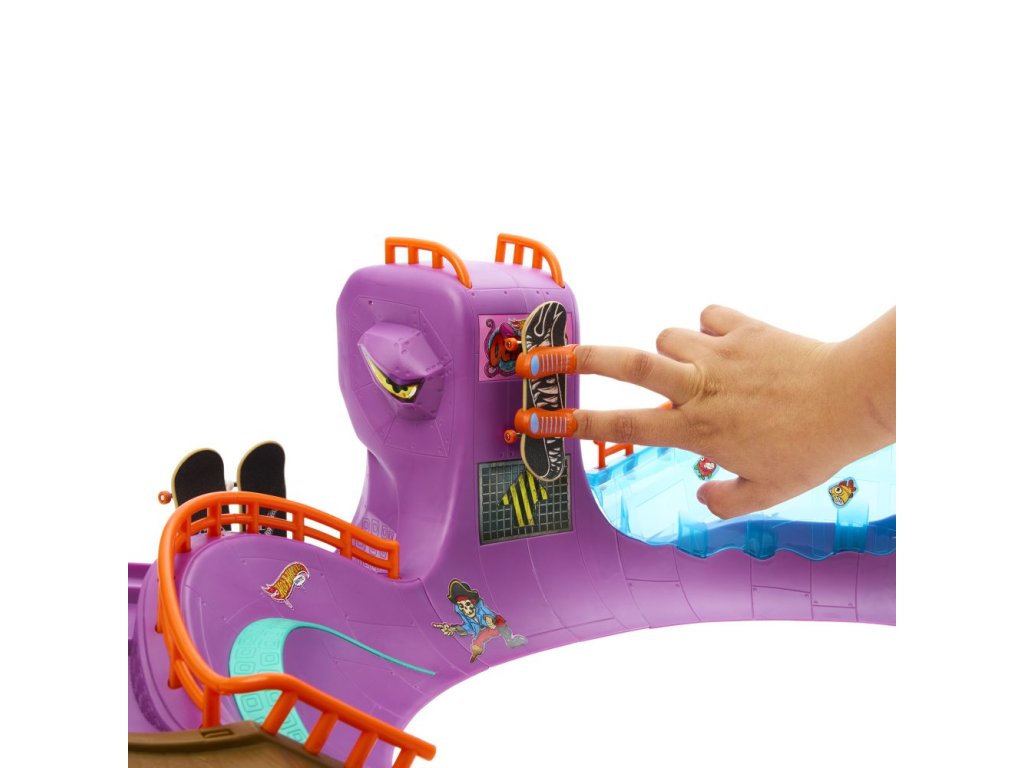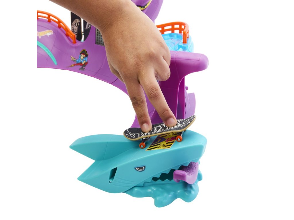 Rozjeďte to stylově na skate sadě Hot Wheels Skate™ Octopark. Seskočte z obří hlavy chobotnice a pusťte se do epické jízdy na fingerboardu, která obsahuje grind raily, vertikální quarterpipes a překvapení v podobě žraločího chřtánu. Součástí balení je jeden exkluzivní, kompletně sestavený fingerboard a pár odnímatelných skate bot. Do úložného prostoru na zadní straně se vejdou další tři prkna a pět párů bot (další prkna a boty se prodávají samostatně.) Barvy a provedení se mohou lišit. Obsahuje 1 sadu Hot Wheels Skate™ Octopark Skate Set s 1 exkluzivním fingerboardem a 1 párem skate bot.