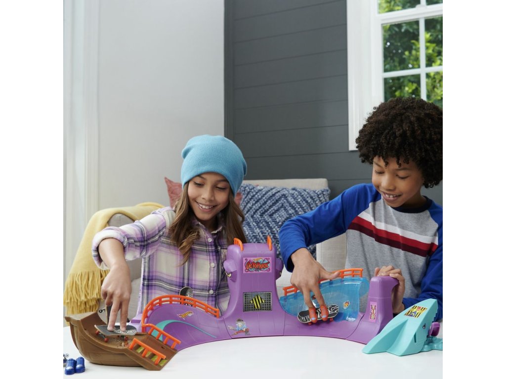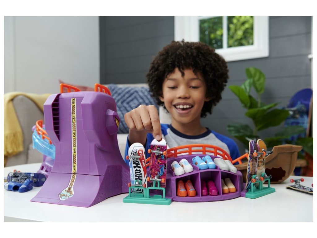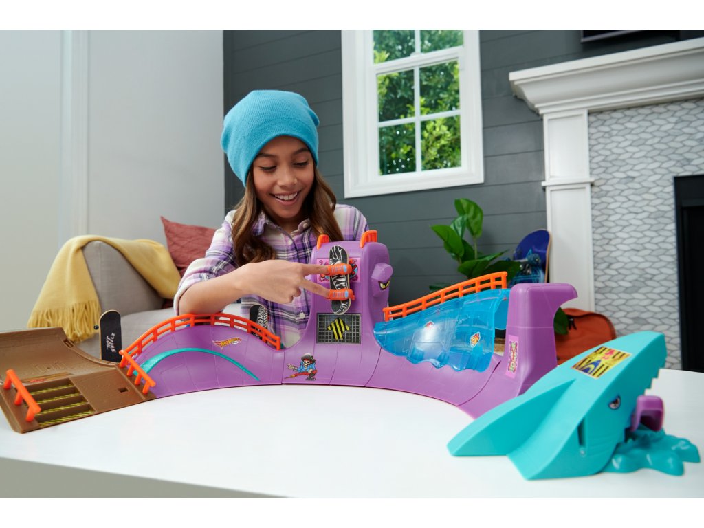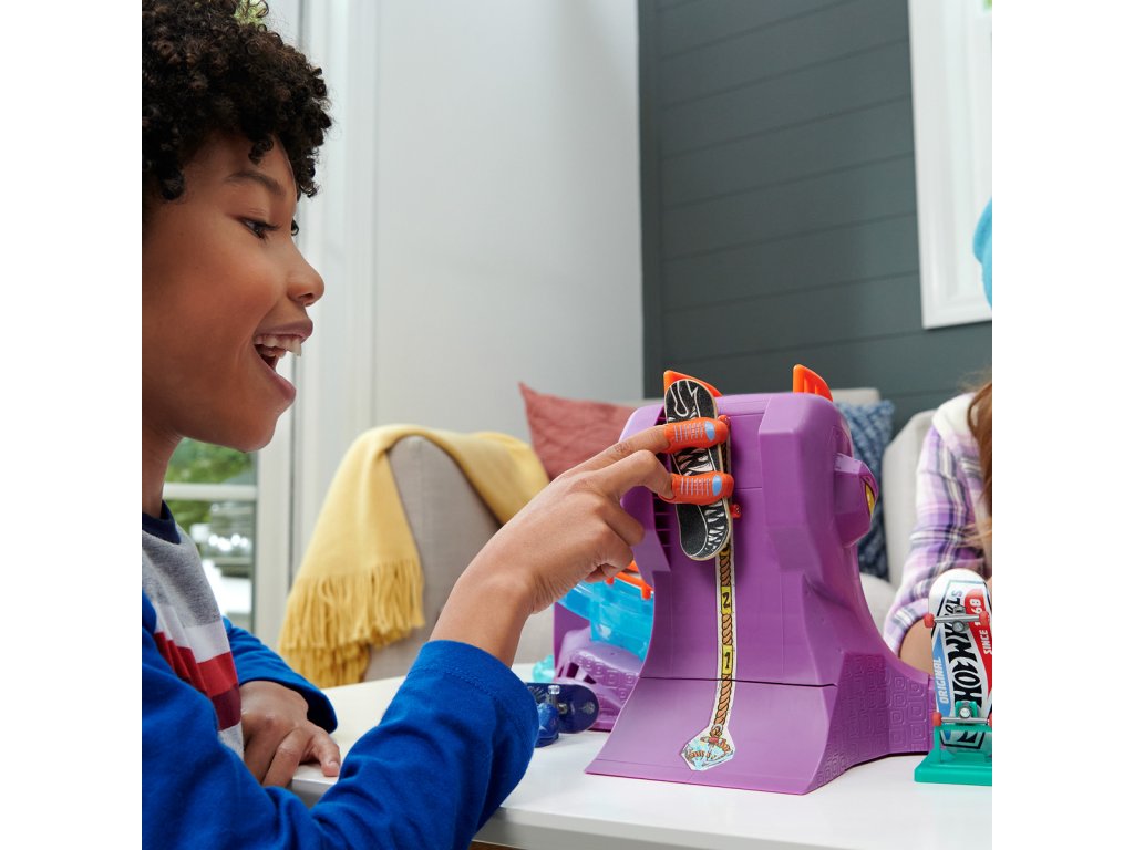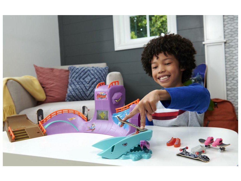 Rozjeďte to stylově na skate sadě Hot Wheels Skate™ Octopark. Seskočte z obří hlavy chobotnice a pusťte se do epické jízdy na fingerboardu, která obsahuje grind raily, vertikální quarterpipes a překvapení v podobě žraločího chřtánu. Součástí balení je jeden exkluzivní, kompletně sestavený fingerboard a pár odnímatelných skate bot. Do úložného prostoru na zadní straně se vejdou další tři prkna a pět párů bot (další prkna a boty se prodávají samostatně.) Barvy a provedení se mohou lišit. Obsahuje 1 sadu Hot Wheels Skate™ Octopark Skate Set s 1 exkluzivním fingerboardem a 1 párem skate bot.