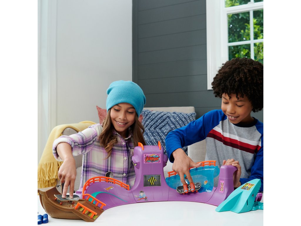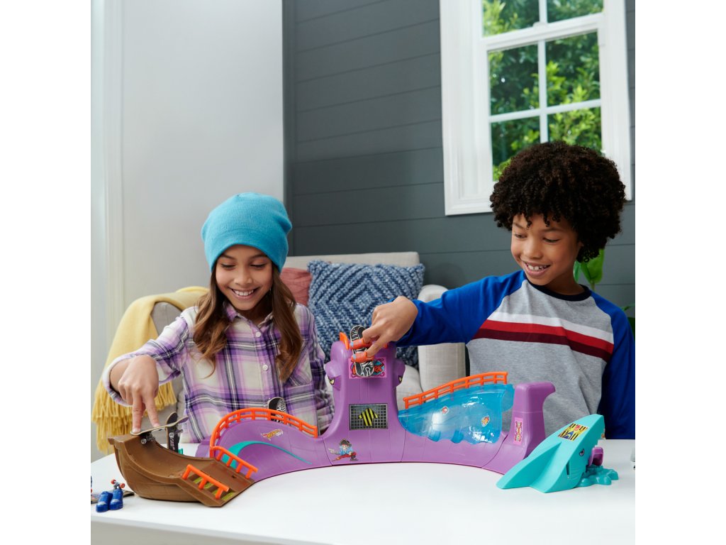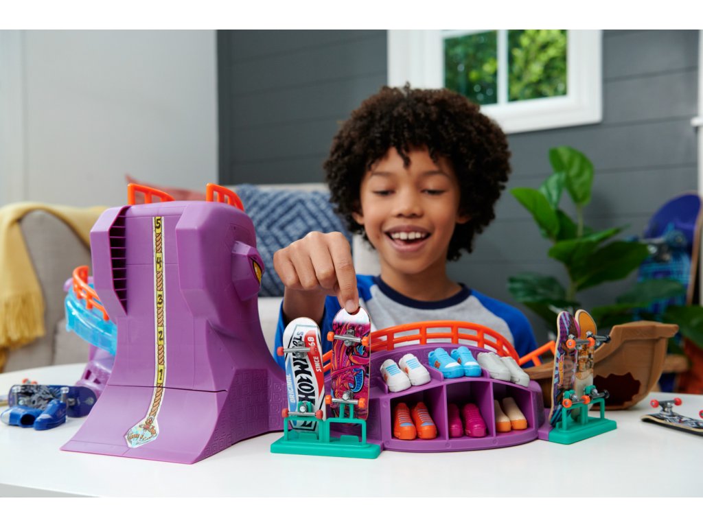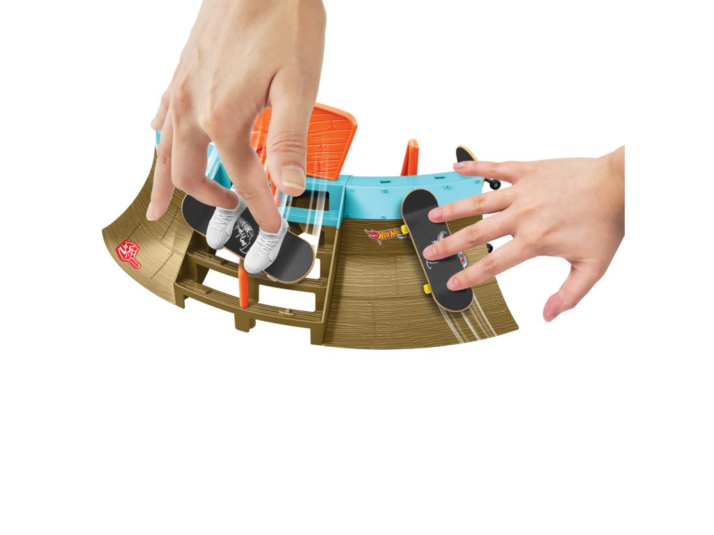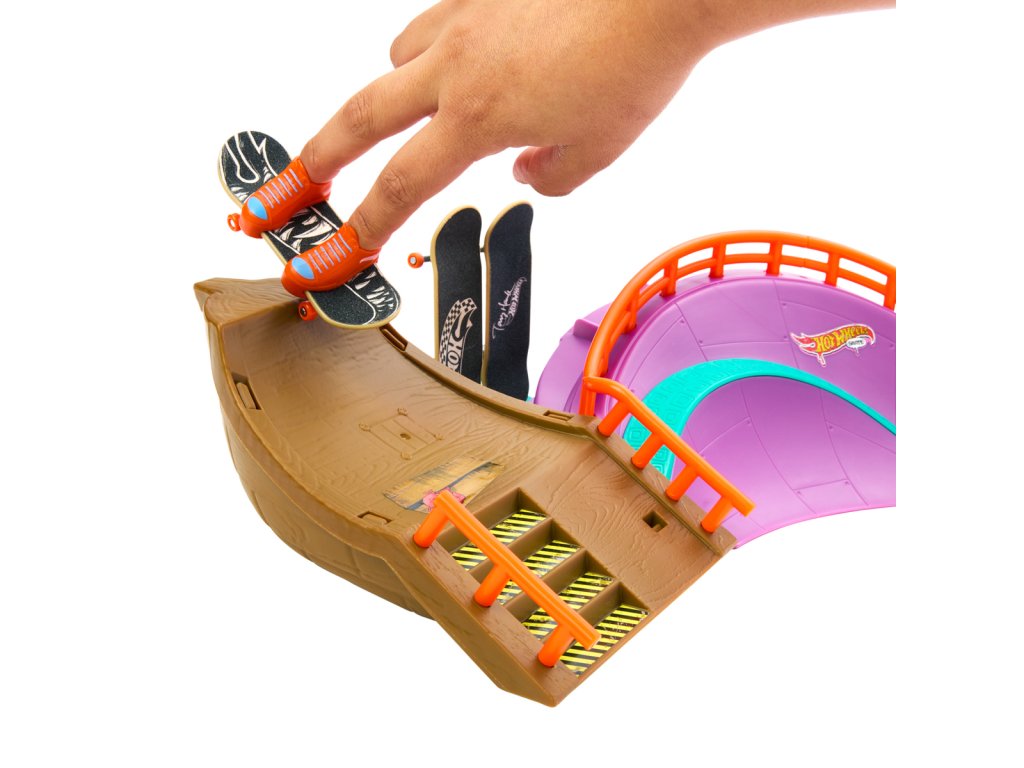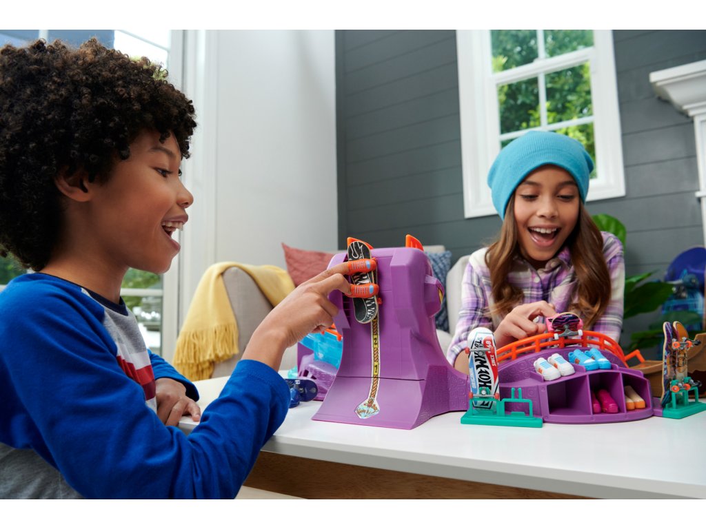 Rozjeďte to stylově na skate sadě Hot Wheels Skate™ Octopark. Seskočte z obří hlavy chobotnice a pusťte se do epické jízdy na fingerboardu, která obsahuje grind raily, vertikální quarterpipes a překvapení v podobě žraločího chřtánu. Součástí balení je jeden exkluzivní, kompletně sestavený fingerboard a pár odnímatelných skate bot. Do úložného prostoru na zadní straně se vejdou další tři prkna a pět párů bot (další prkna a boty se prodávají samostatně.) Barvy a provedení se mohou lišit. Obsahuje 1 sadu Hot Wheels Skate™ Octopark Skate Set s 1 exkluzivním fingerboardem a 1 párem skate bot.