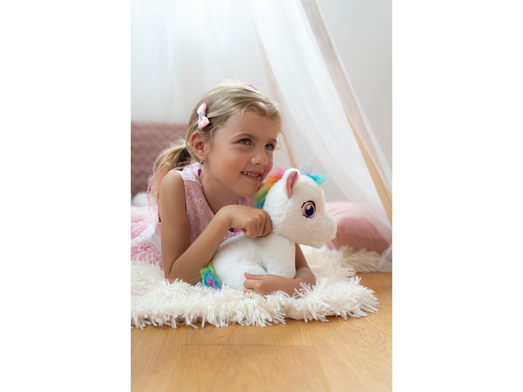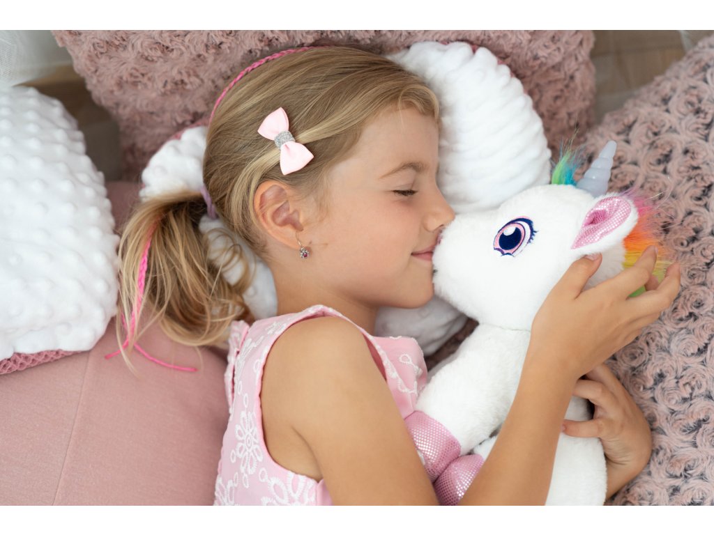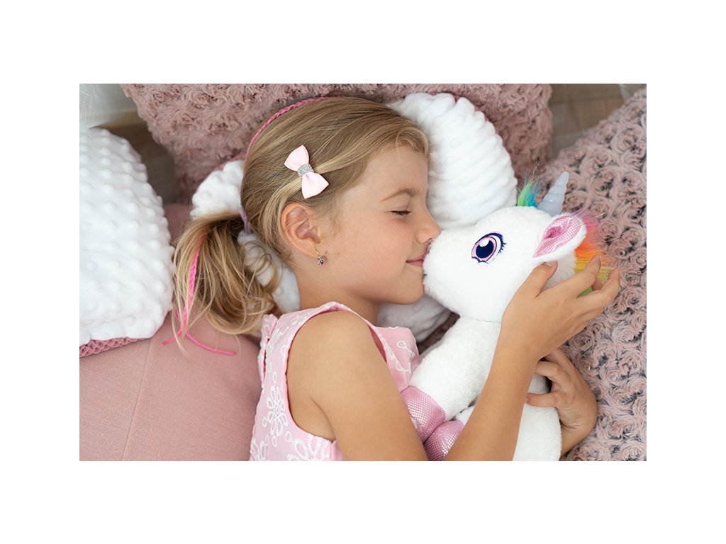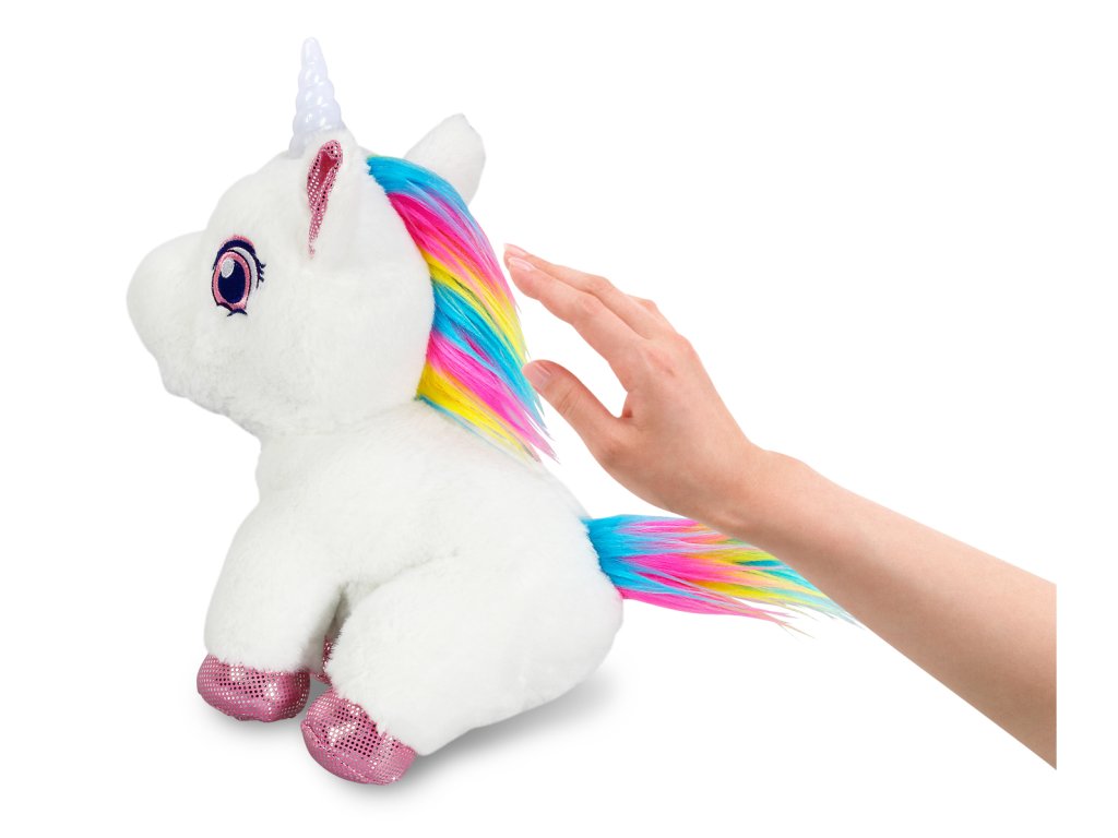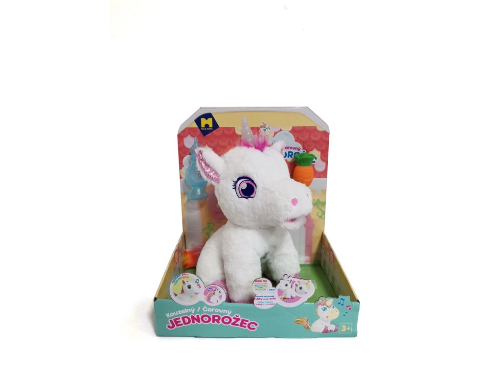Interaktivní jednorožec, který vydává roztomilé zvuky, při pohlazení po zádech chrlí páru z pusinky a spokojene vrní a svítí mu roh různými barvami, které se mění.
