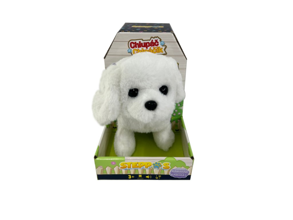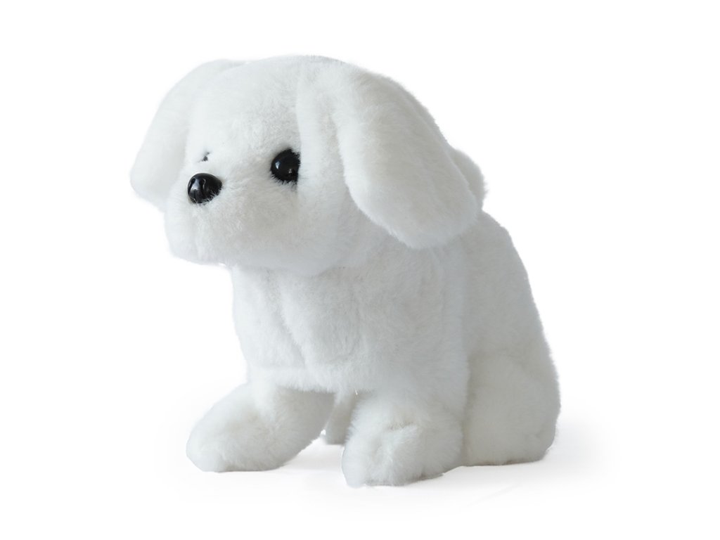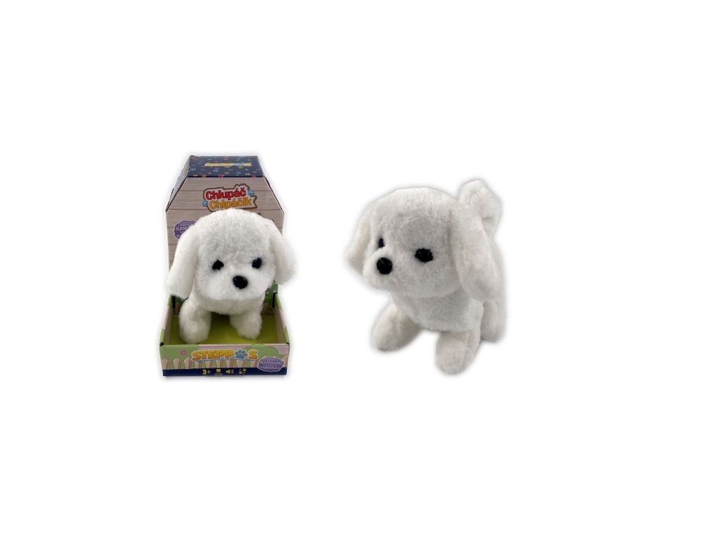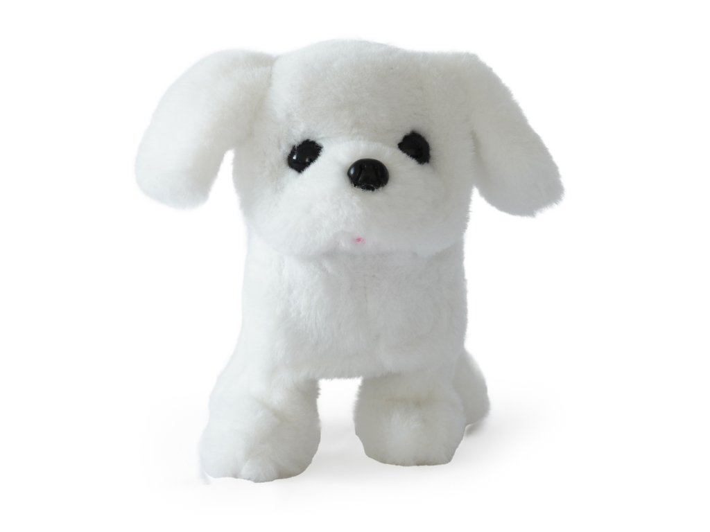 Pejsek na baterie, který chodí, štěká a hýbe ocáskem.