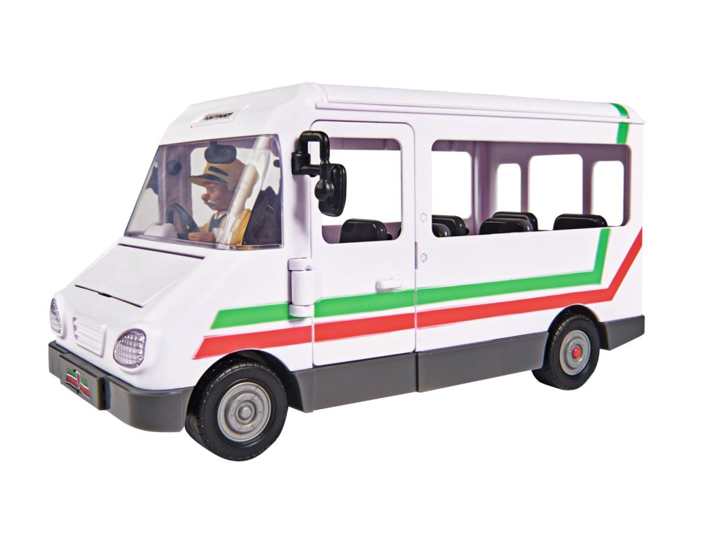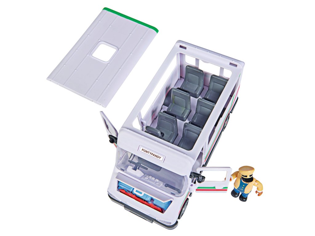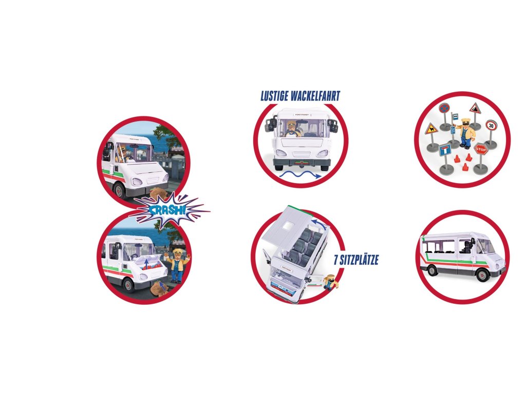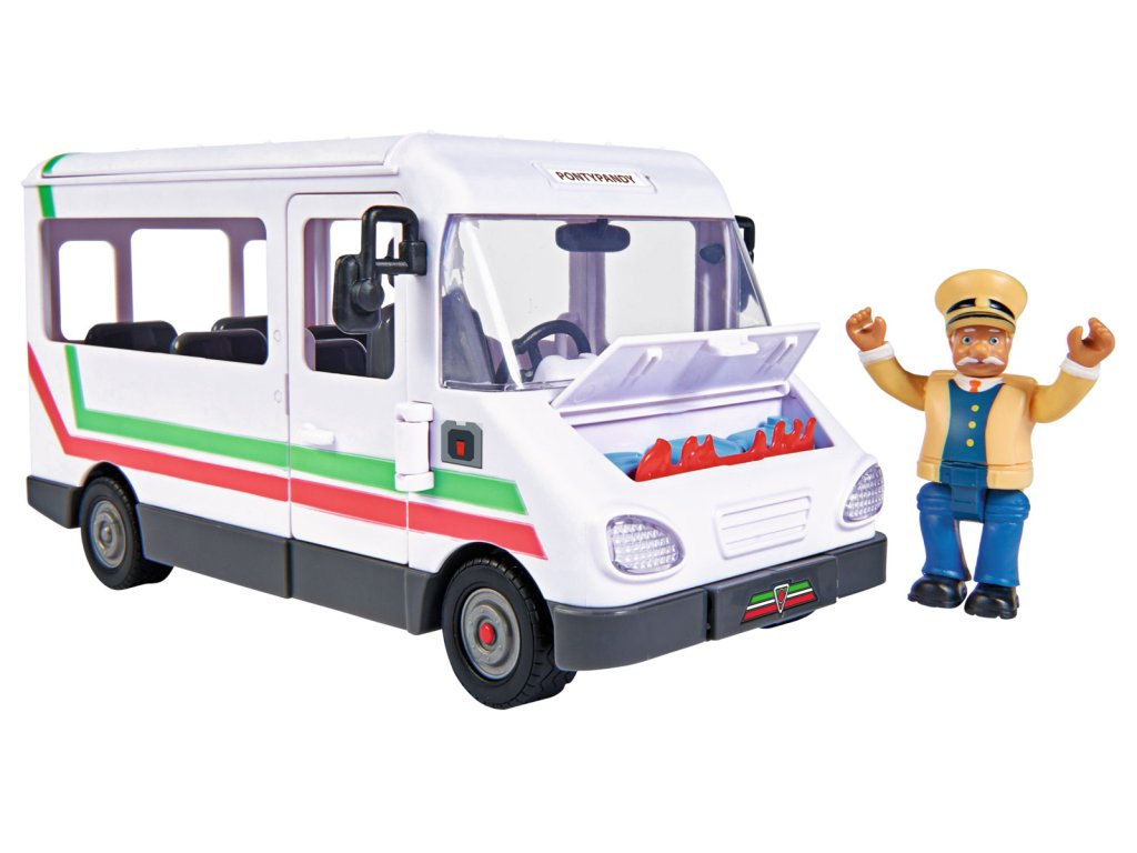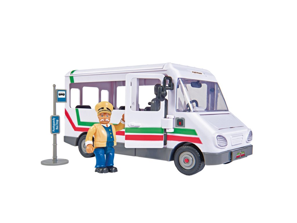 Trevorův autobus z oblíbeného seriálu Požárník Sam. Kapota motoru se při nárazu otevře a objeví se plameny. Otevírací dveře a střecha. Včetně figurky Trevora a dalšího příslušenství. Velikost 21 cm.