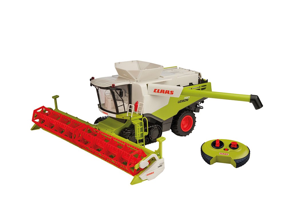 Kombajn CLAAS LEXION je věrnou kopií skutečného kombajnu. Má plnou funkci řízení a řazení. Funkční přední a zadní světla. Otočná kola, mechanická sekačka, výkyvná výstupní trubka a uzavíratelná nádrž na obilí. Kombajn je na dálkové ovládání s frekvencí 2,4 GHz. Kombajn je na baterie 4xAA, ovladač 2xAAA. Baterie jsou součástí balení. Vhodné pro děti od 6 let.