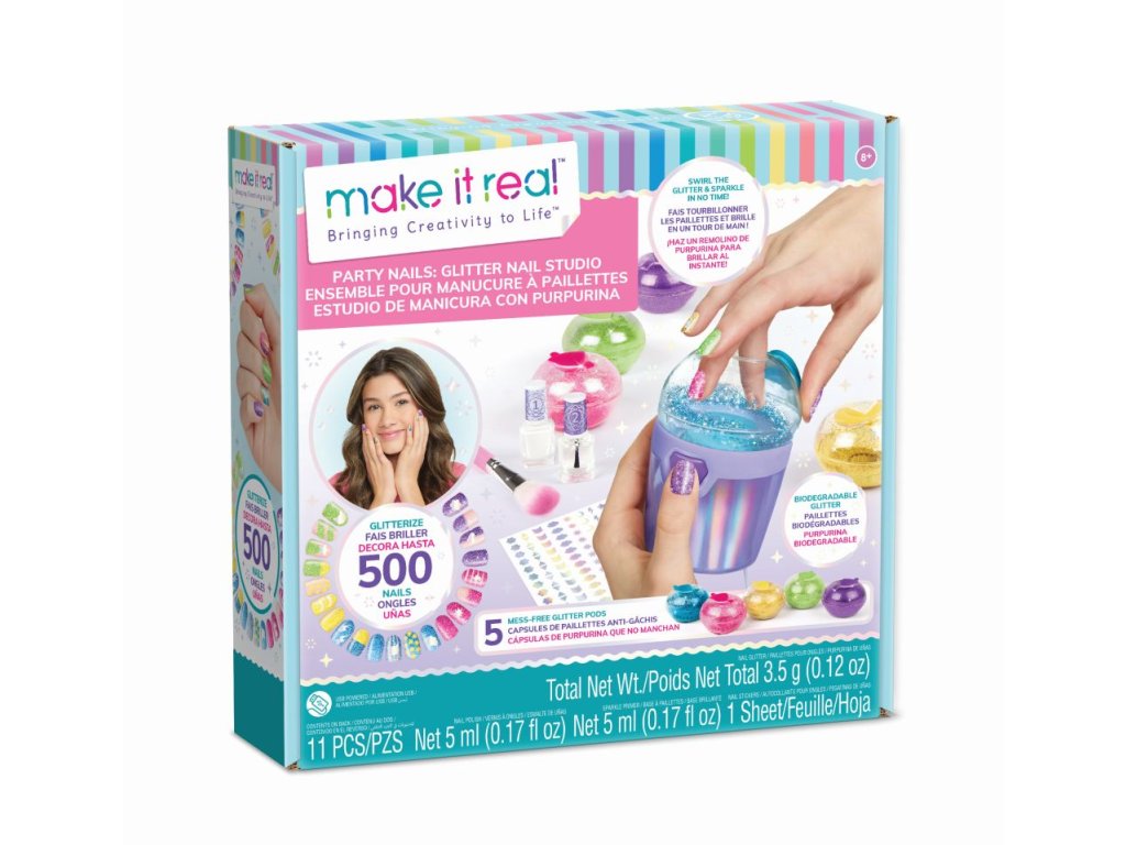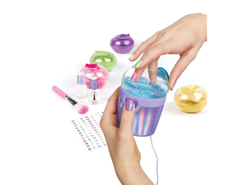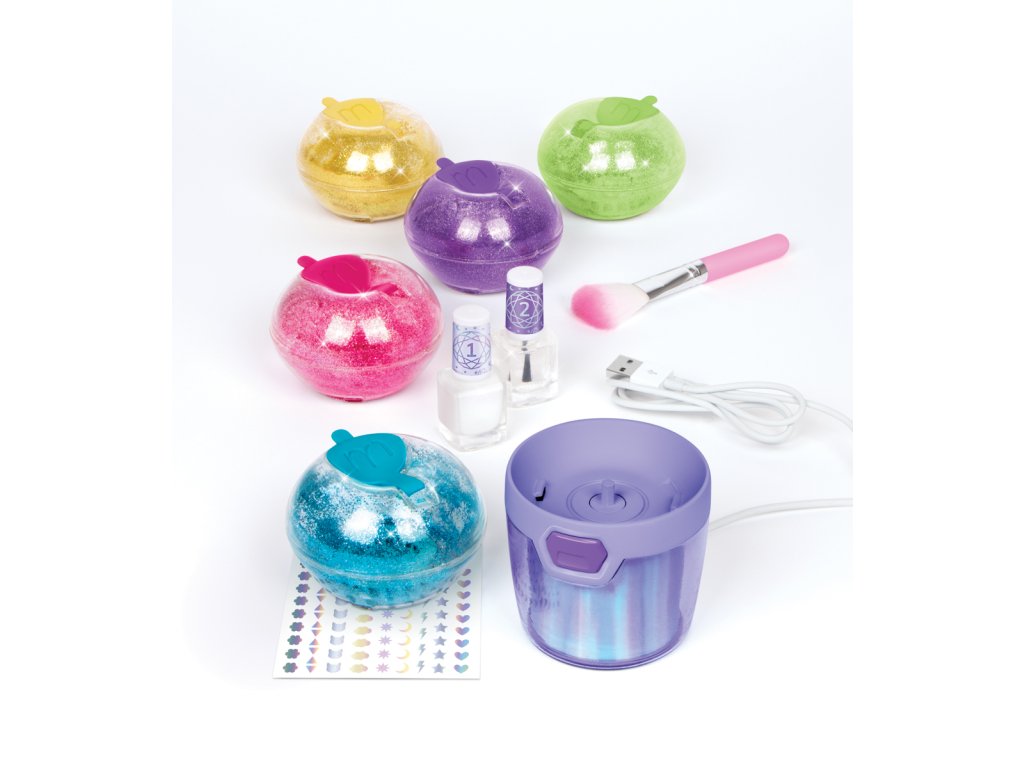 Máte doma malou parádnici, která se ráda zkrášluje? Pak ji jistě nadchnete touto třpytivou party sadou. Sada obsahuje spinner, 5 druhů barevnách třpytek, 1 jiskřivý základní lak, čirý lak, štětec a samolepky na nehty. Vhodné pro dívky od 8 let.