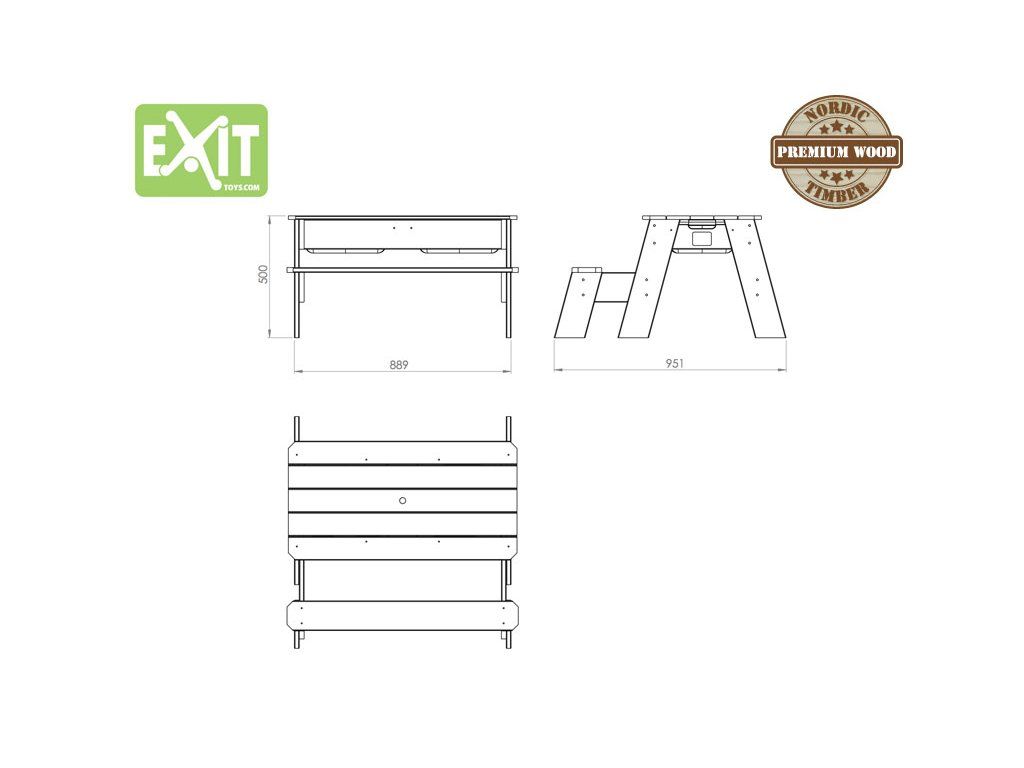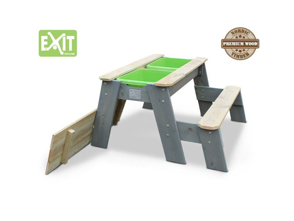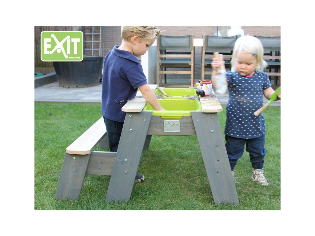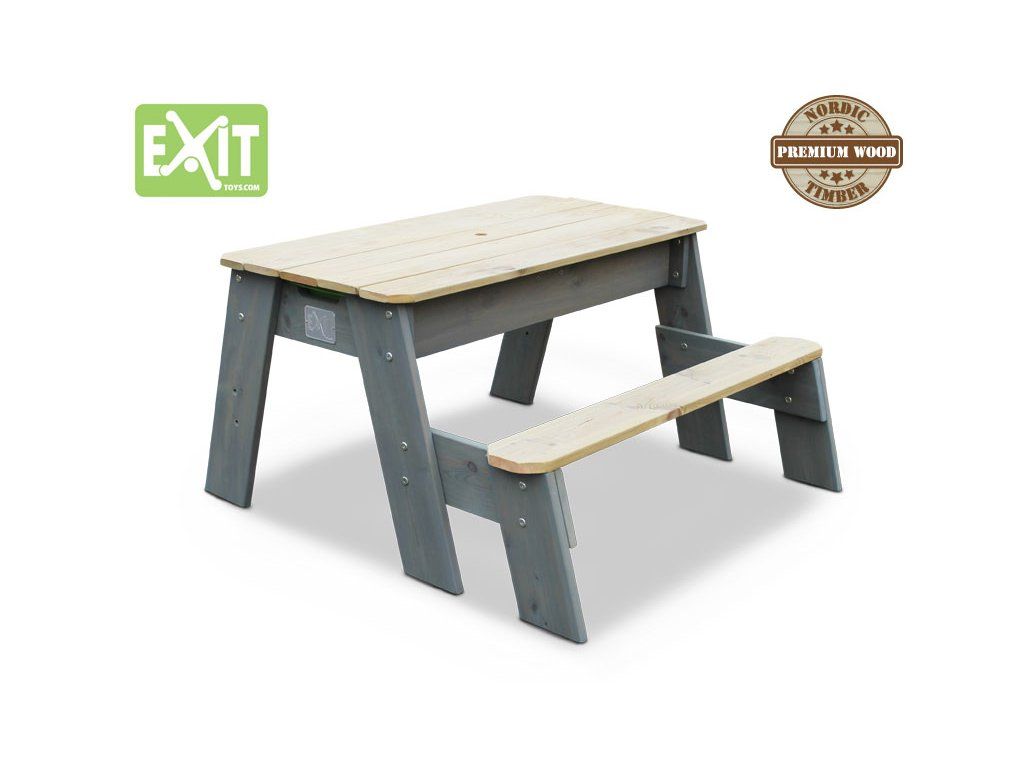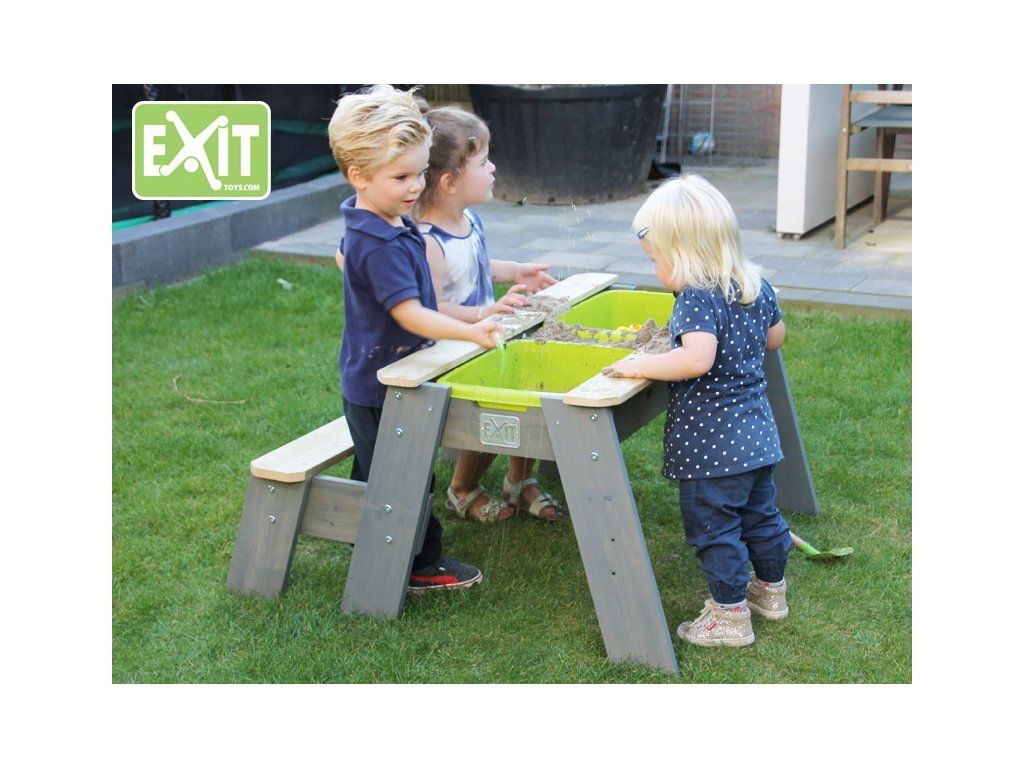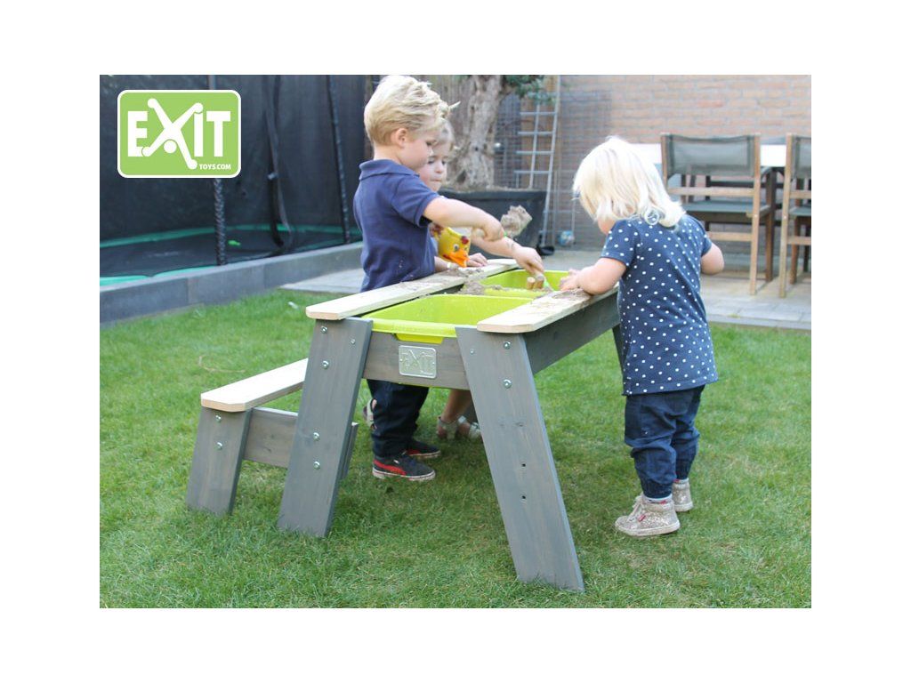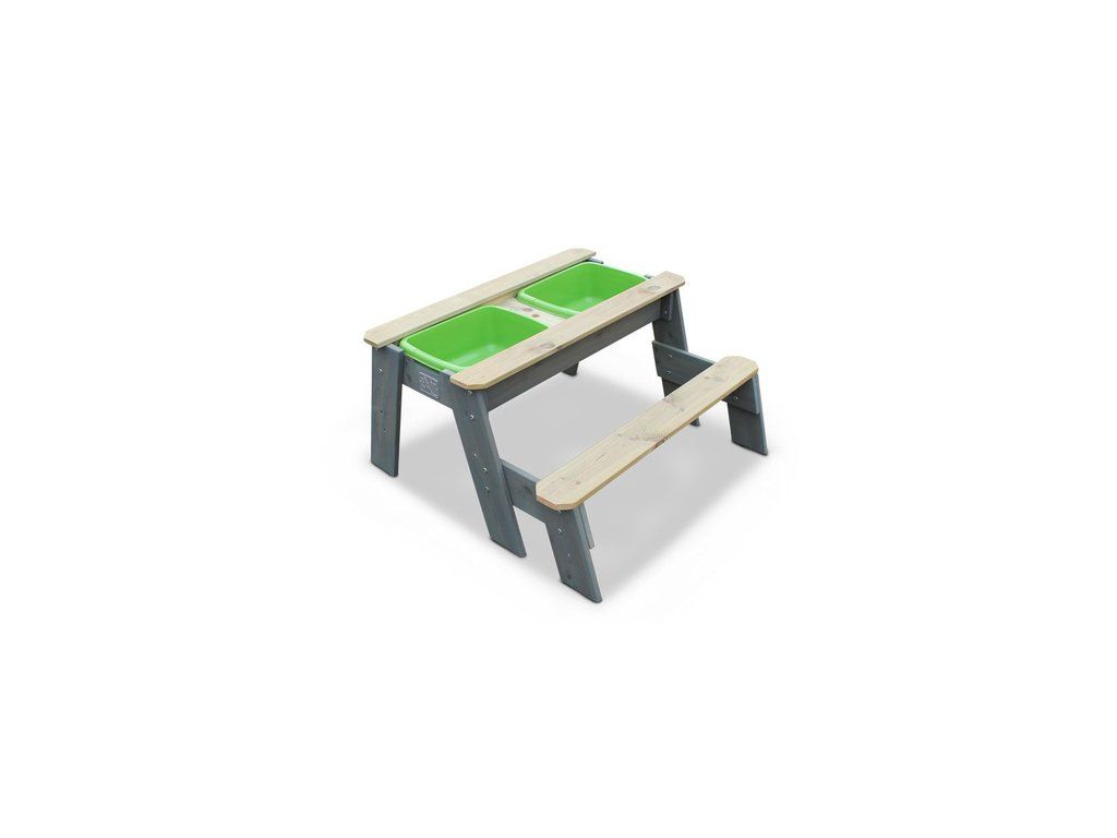 Tento multifunkční stůl můžete použít jako pískoviště, nebo po přidání plastové nádoby jako vodní stůl a při zakrytí jako stolek pro děti, kde si mohou například malovat. Tento stůl je vyyroben z FSC certifikovaného dřeva, ošetřeného impregnací proti škůdcům a chorobám.