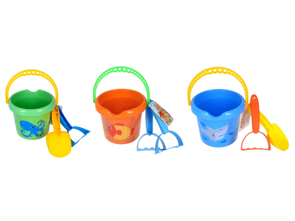 Sada na písek 3 ks (kyblík, lopatka, hrábě). 3 varianty - modrá, zelená, oranžová.