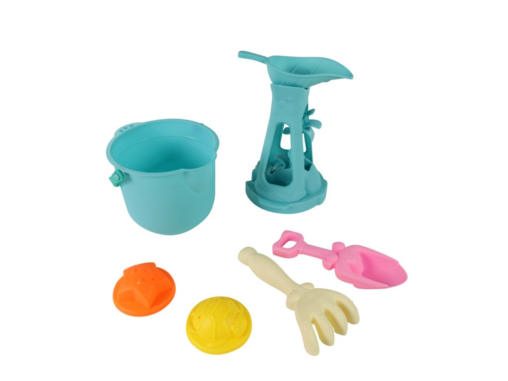 Barevná sada na písek je skvělým dárkem pro děti ke hrám na pískovišti! Sada obsahuje kyblík o průměru 15 cm, 1 lopatku, hrábě, 2 formičky a mlýnek. Vše je vyrobeno z odolného plastu. Hraní na pískovišti a stavění báboviček zajistí dětem mnoho hodin zábavy. Tyto hračky dokonale podporují kreativitu, fantazii a soustředění dítěte.